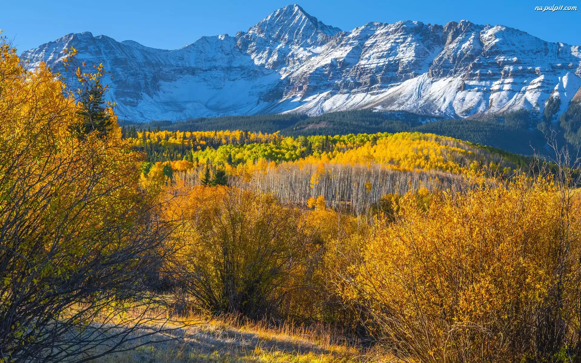 Krzewy Jesień, Las, Wilson Peak, Stany Zjednoczone, Kolorado, Góra, Drzewa Na Pulpit