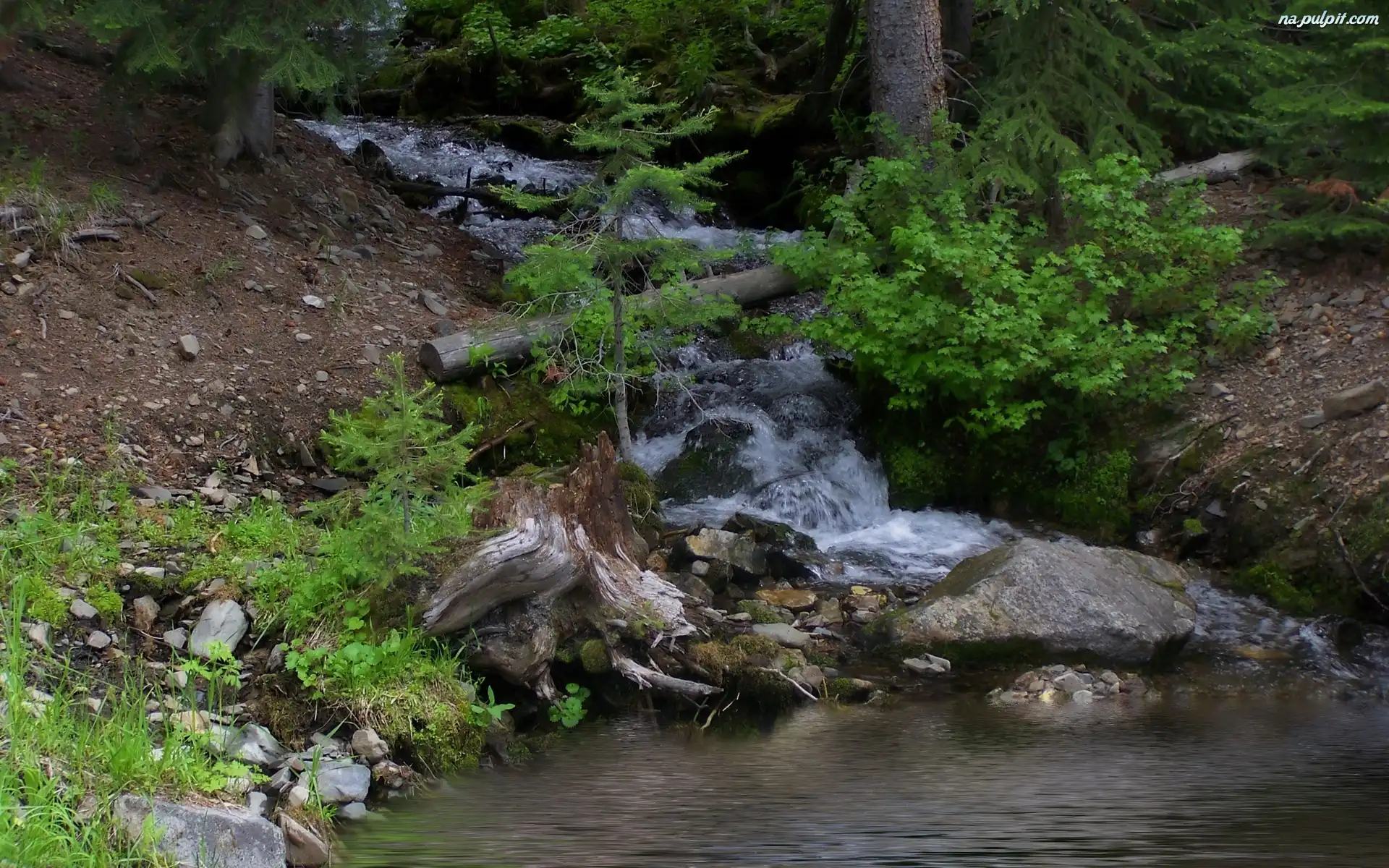 Krzewy, Las, Potok, Górski, Kamienie