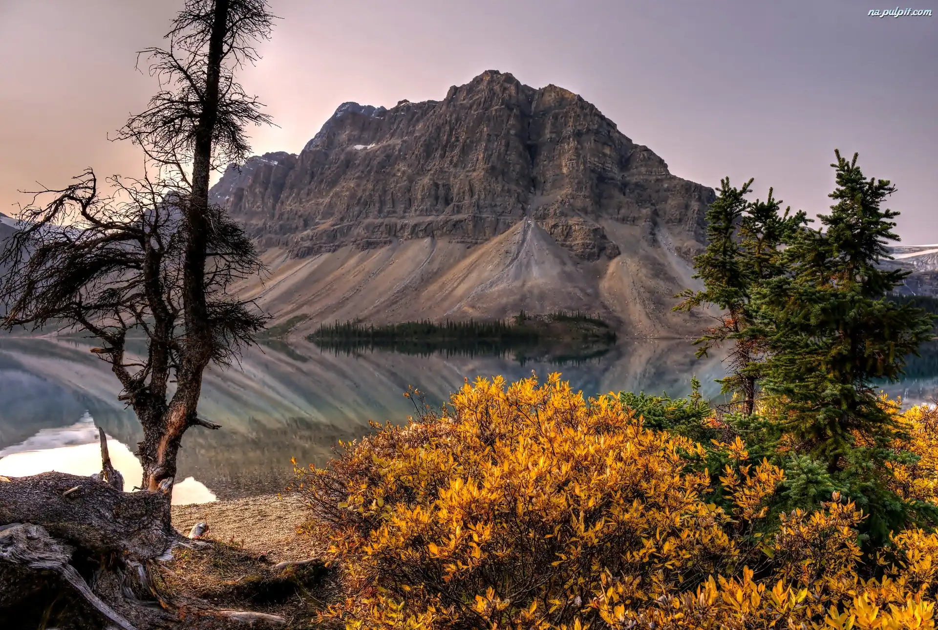 Krzewy, Jezioro, Góry, Drzewa Na Pulpit