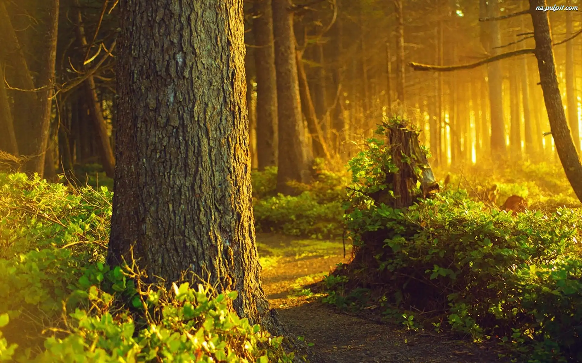 Krzewy, Przebijające, Ścieżka, Las, Światło Na Pulpit