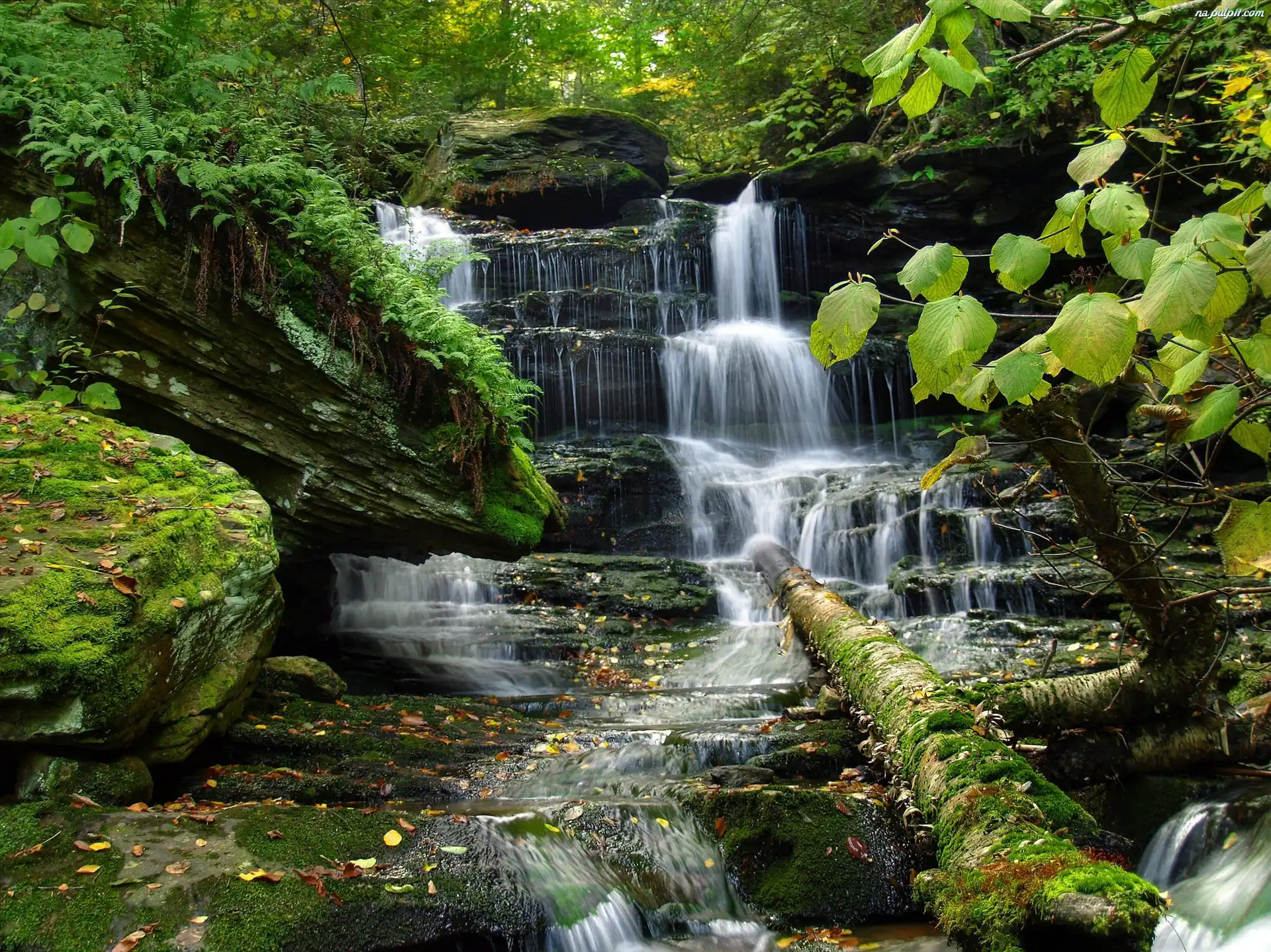 Krzewy, Wodospad, Rzeczka, Las, Drzewa Na Pulpit