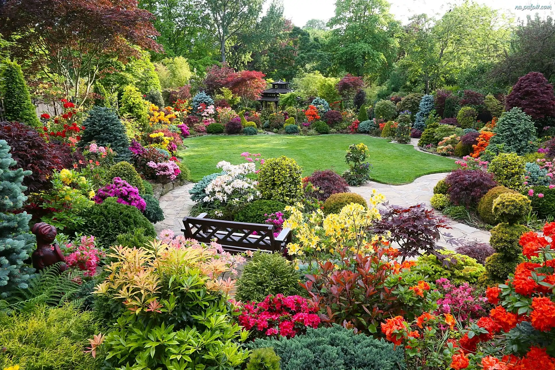 Krzewy, Ławka, Altana, Kolorowe, Ogród, Kwiaty Na Pulpit