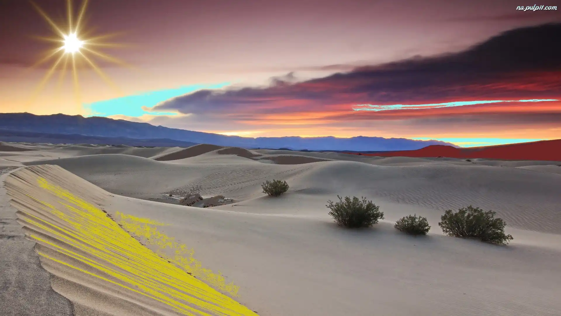 Krzewy, Chmury, Pustynia, Słońce Na Pulpit