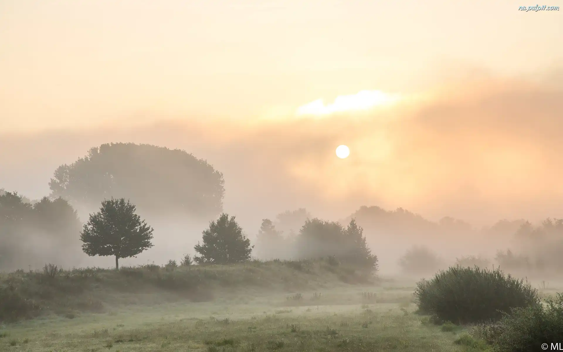 Krzewy, Mgła, Wschód słońca, Drzewa Na Pulpit