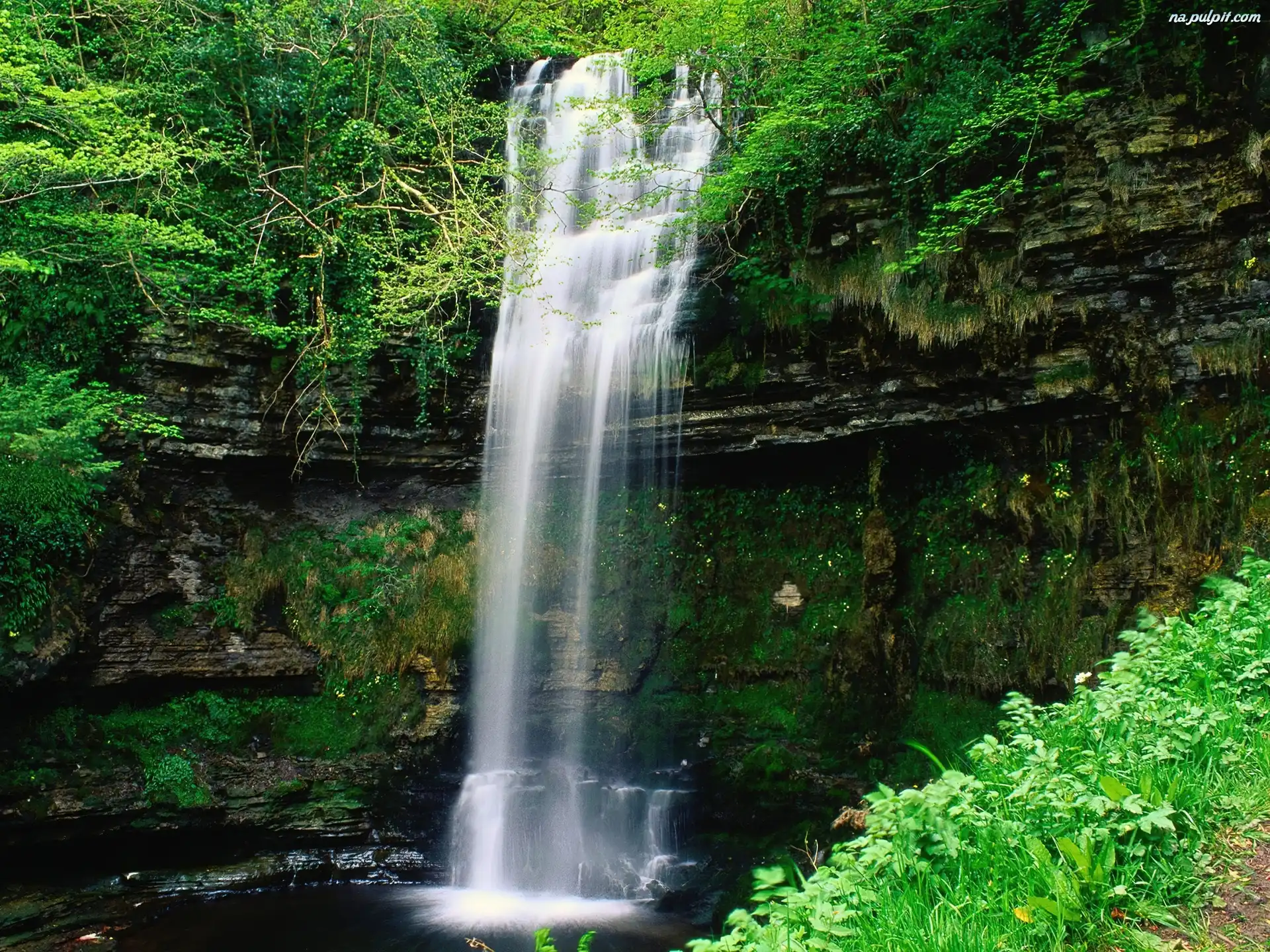 Krzewy, Skały, Wodospad, Zarośla Na Pulpit