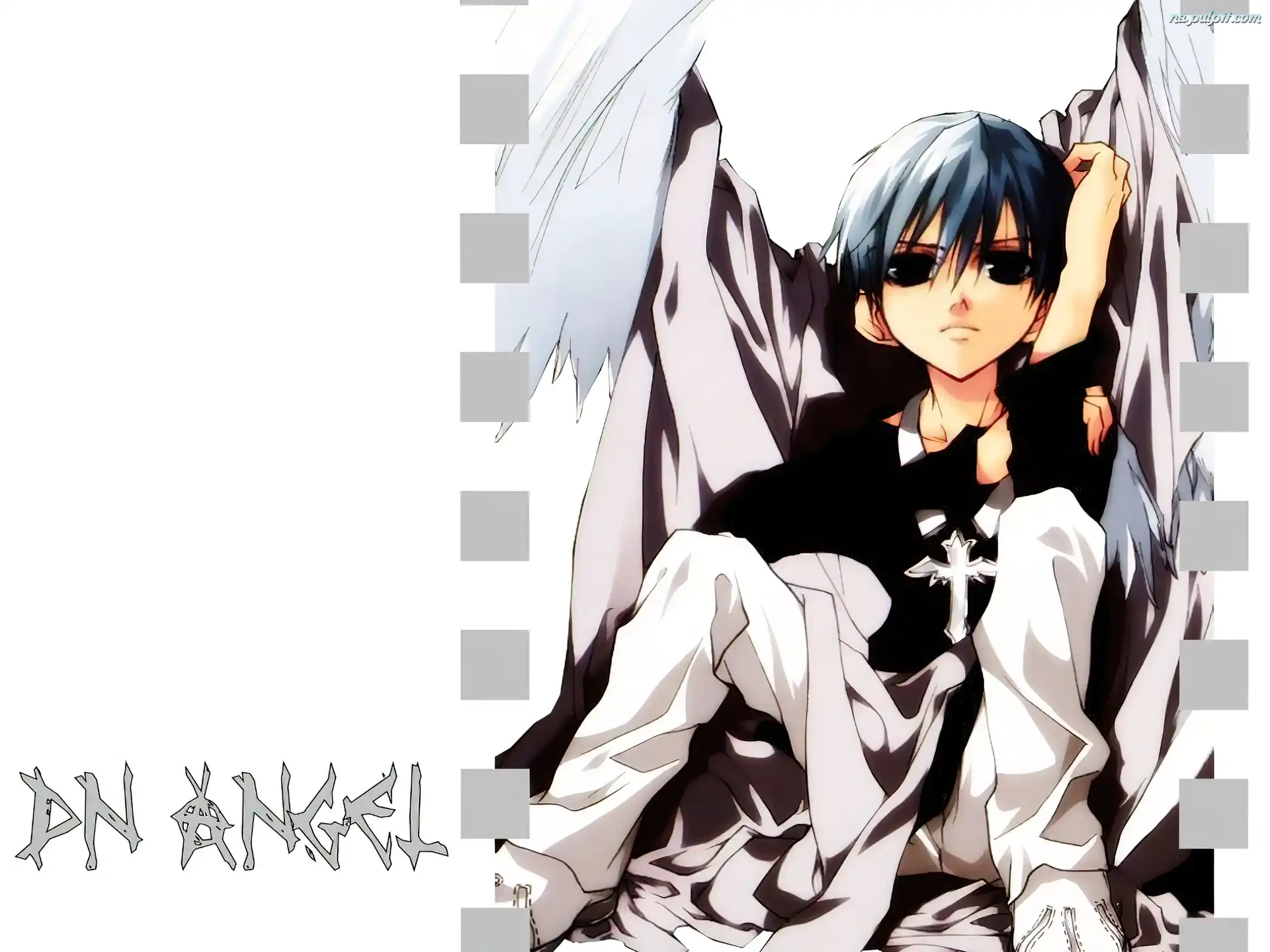 chłopak, krzyż, skrzydła, D N Angel, siedzi