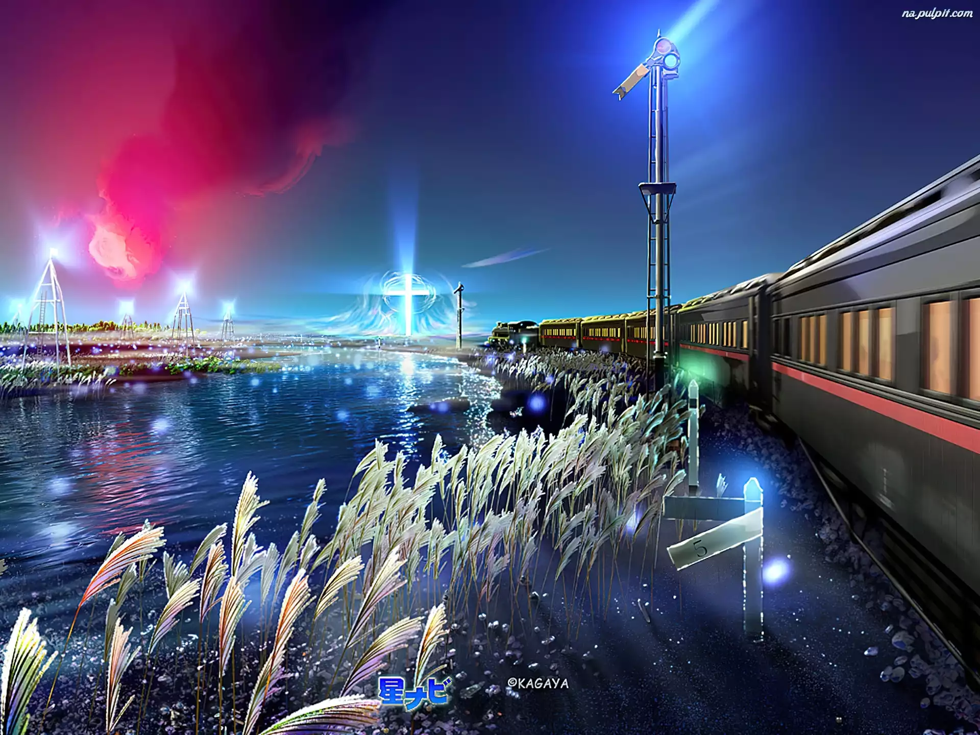 Krzyż, Pociąg, Kagaya, Grafika, Woda