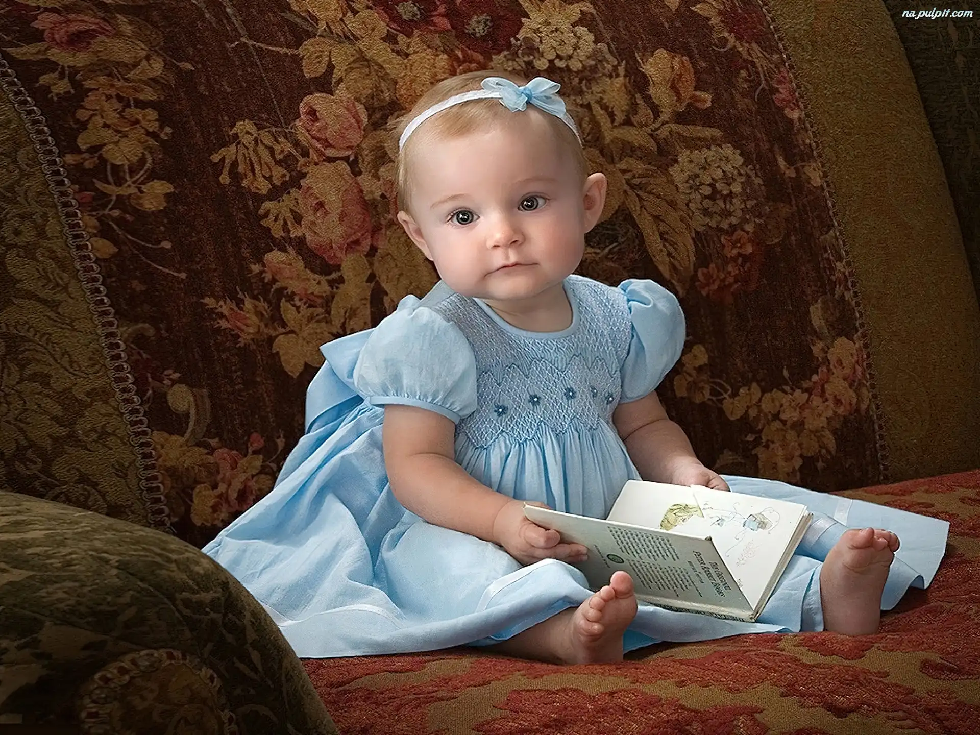 Książeczka, Błękitna, Dziewczynka, Sukienka