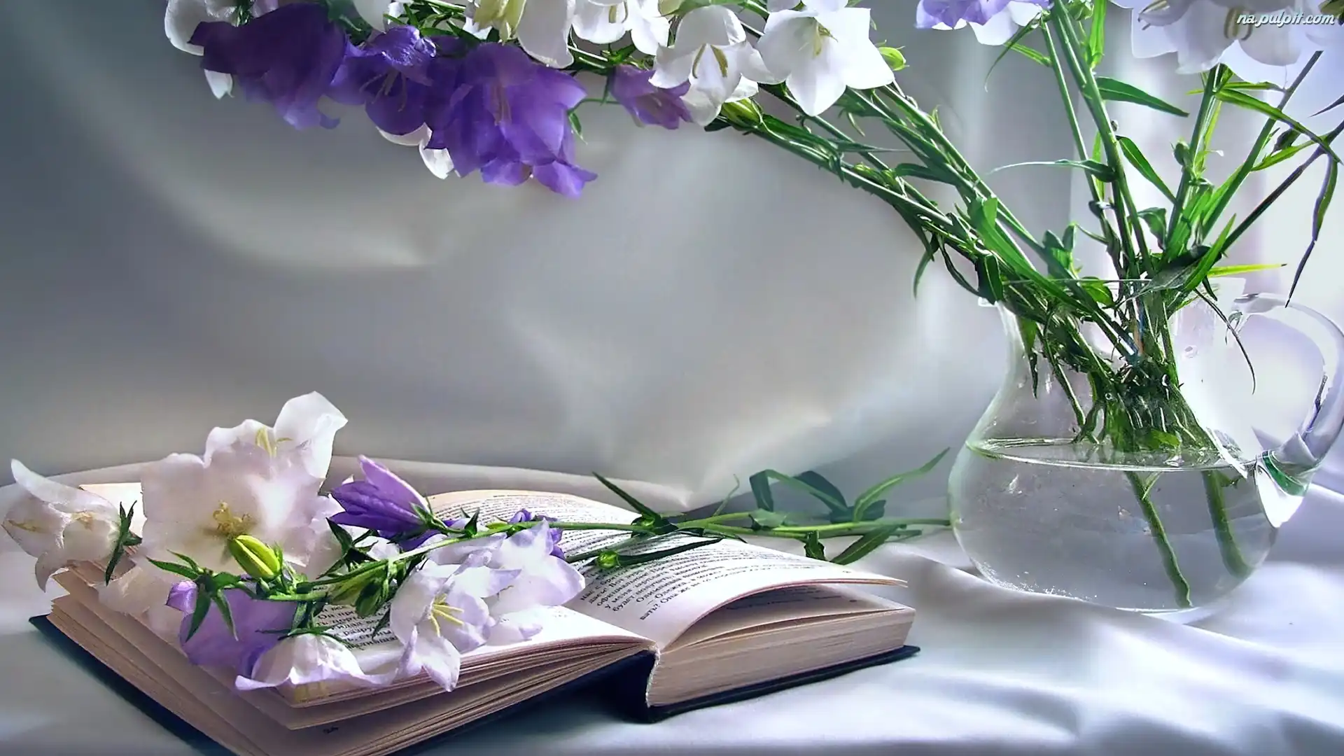 Książka, Fioletowe, Biało, Dzwoneczki