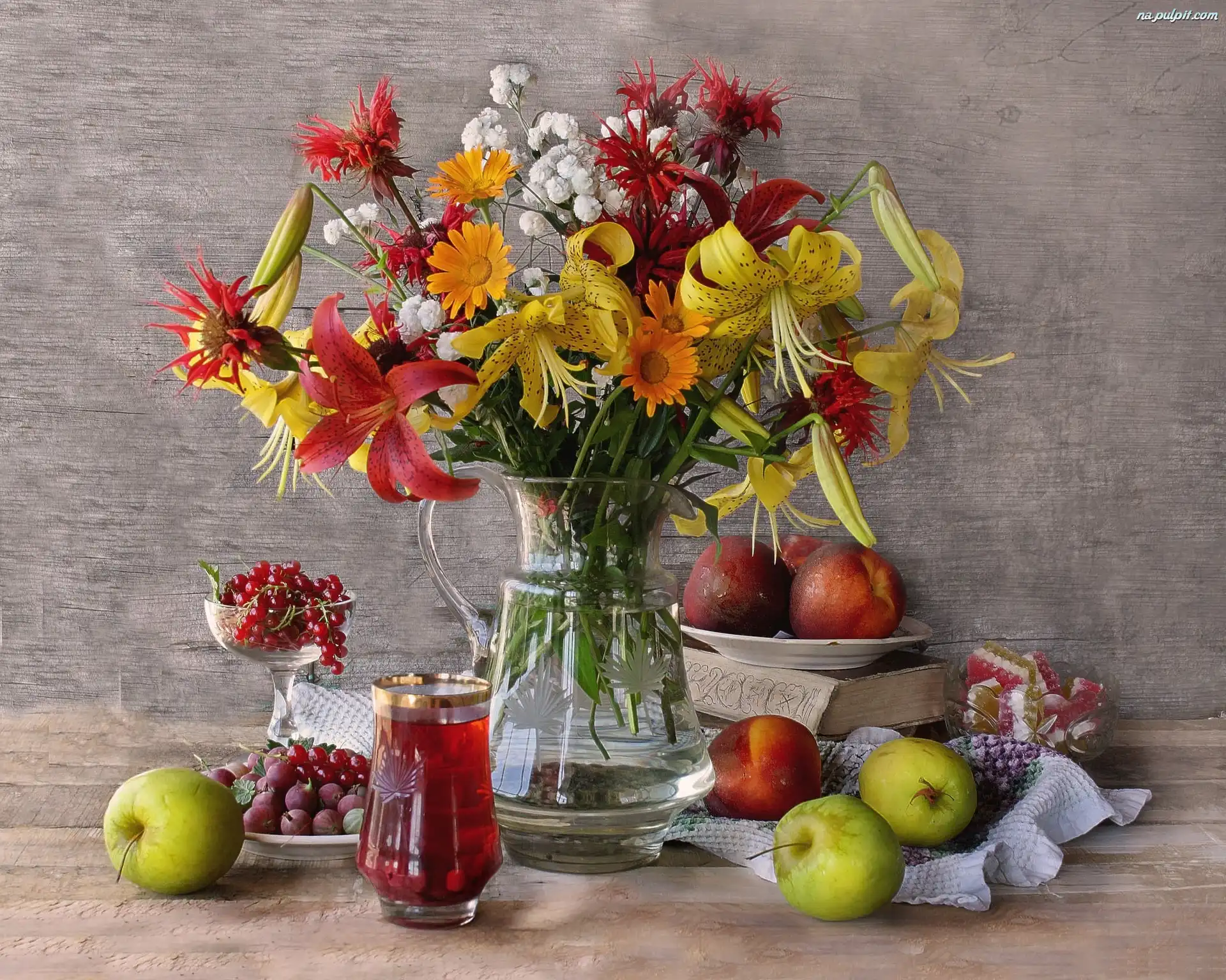 Książka, Owoce, Kwiatów, Bukiet, Wino Na Pulpit
