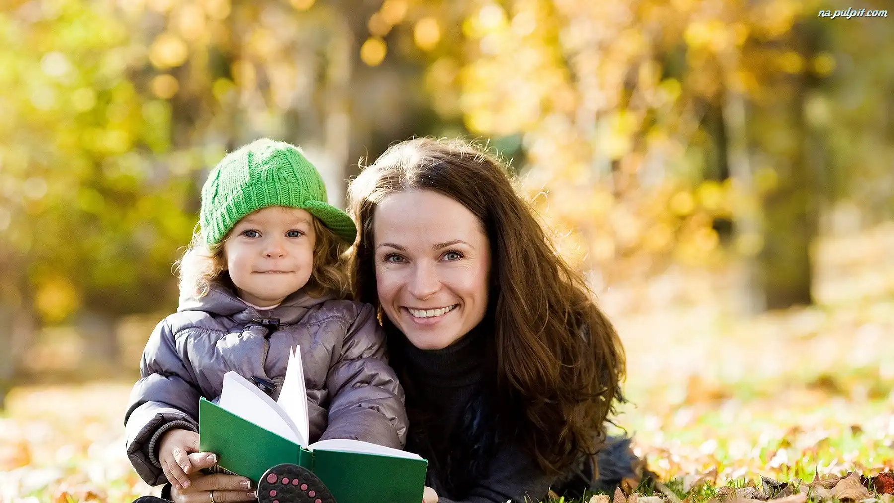 Książka, Park, Córka, Mama, Jesień Na Pulpit