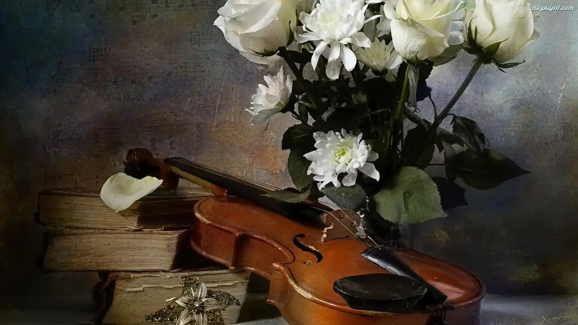 Książki, Skrzypce, Kwiatów, Bukiet, Stare Na Pulpit