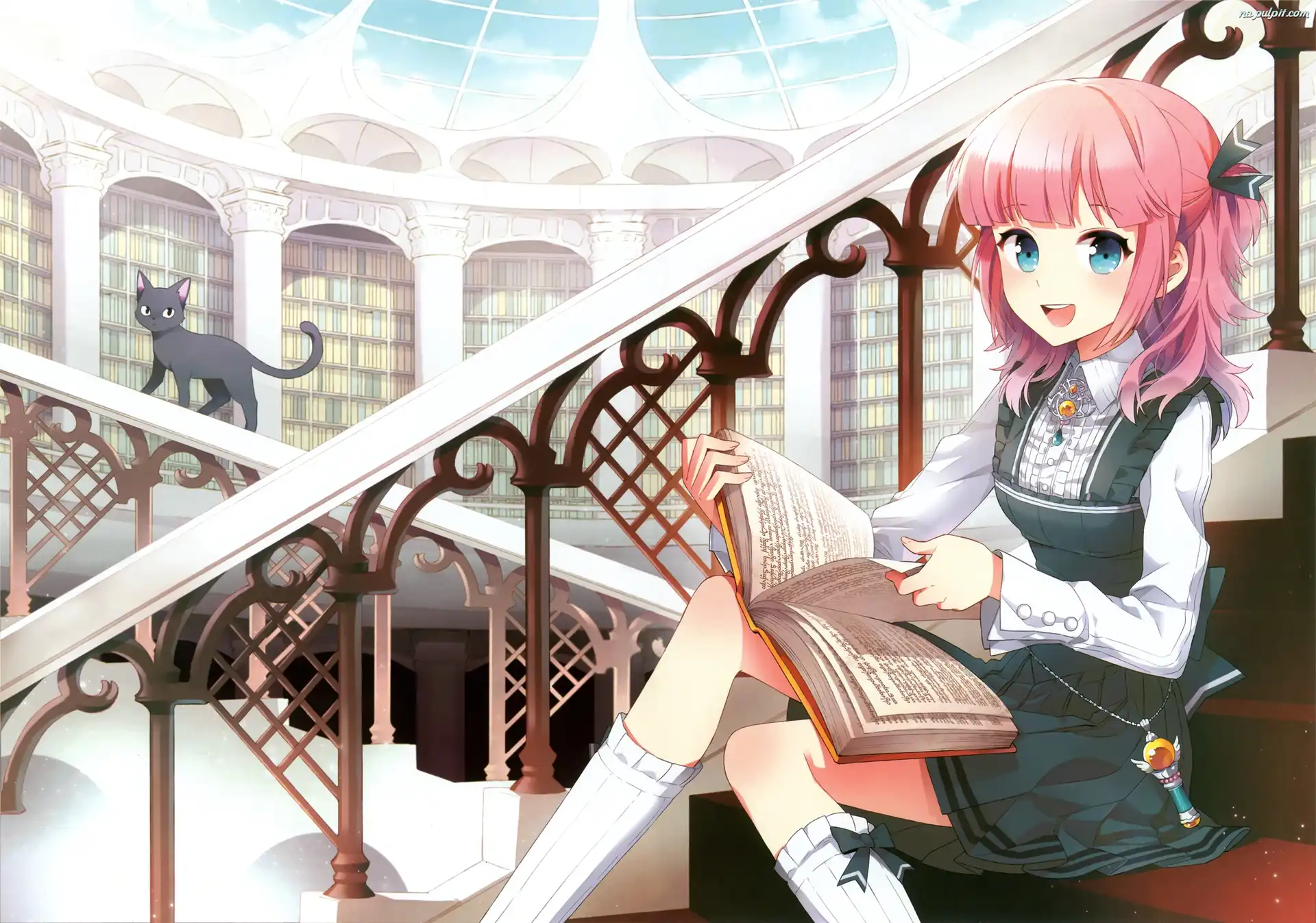 Książki, Biblioteka, Dziewczyna, Kot Na Pulpit