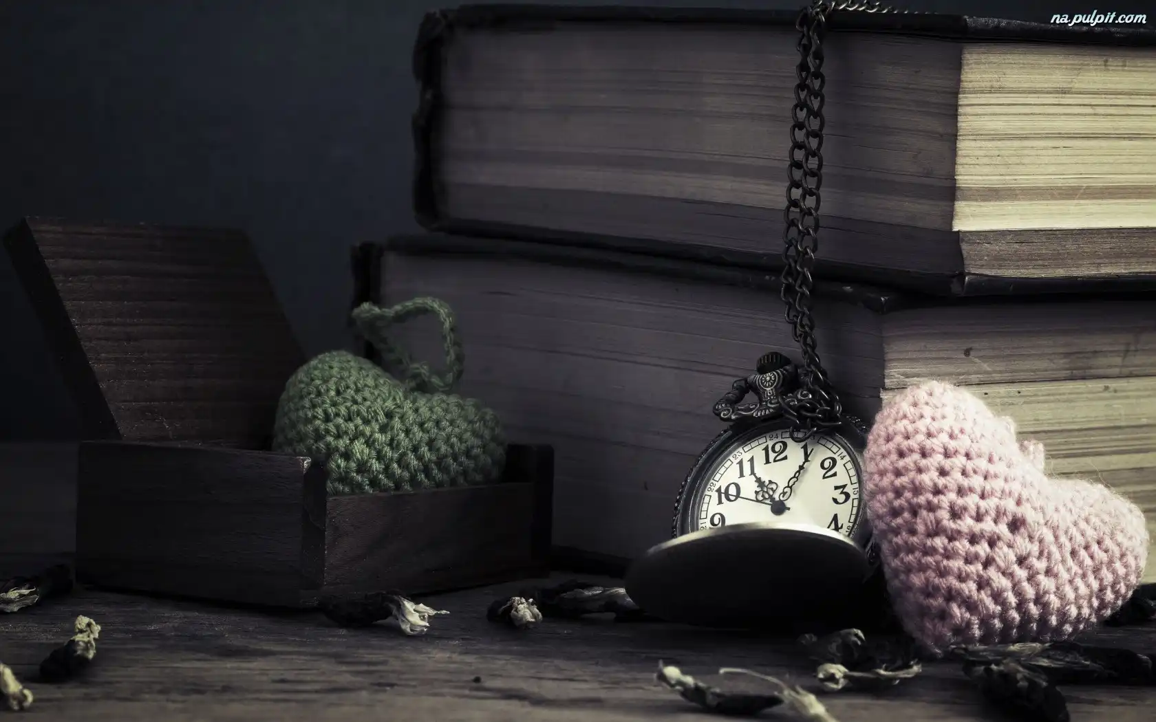 Książki, Serca, Szmaciane, Zegarek Na Pulpit