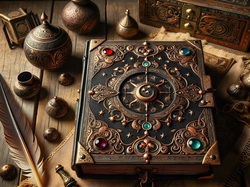 Naczynia, Księga, Ornament, AI, Pióro Na Pulpit