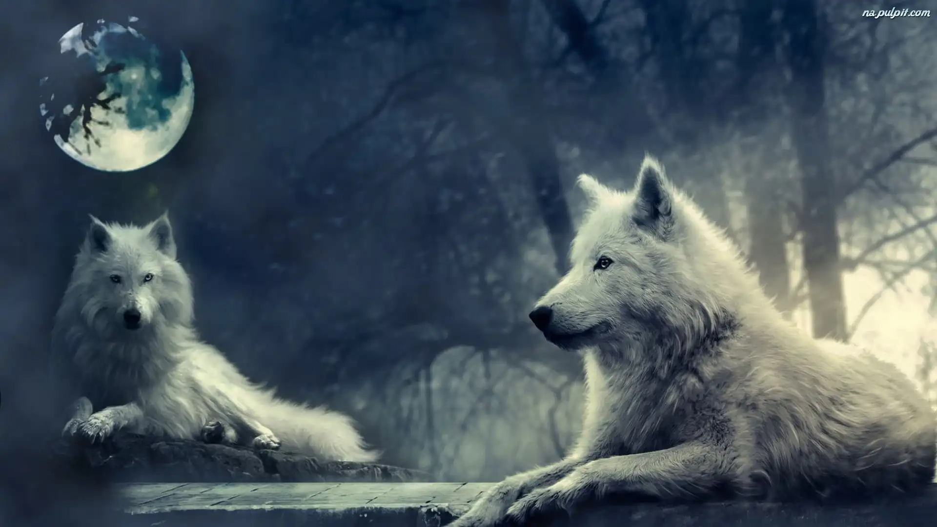 Księżyc, Wilki, Białe, Noc Na Pulpit