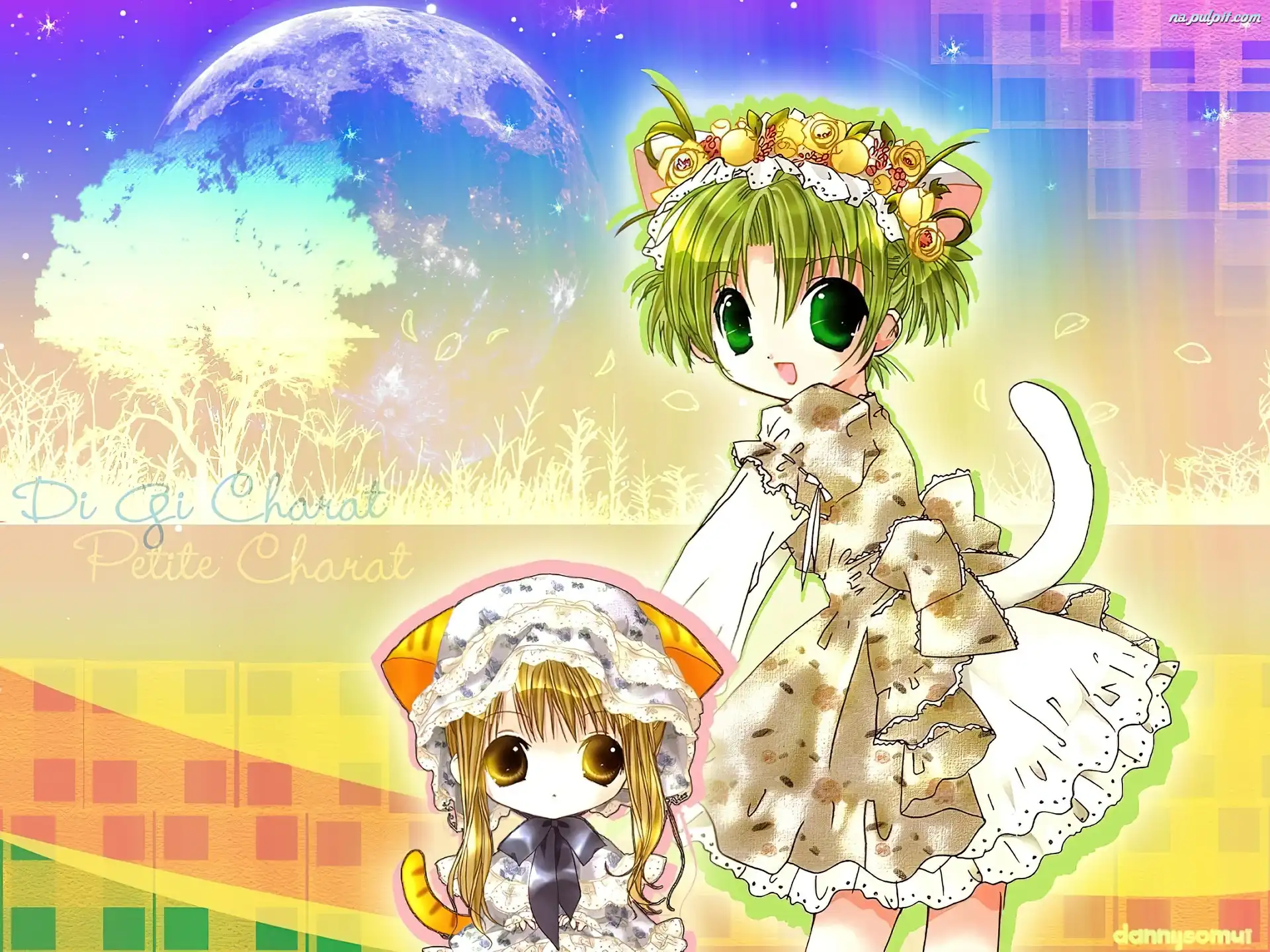 księżyc, oczy, dziewczyny, Digi Charat, ogon