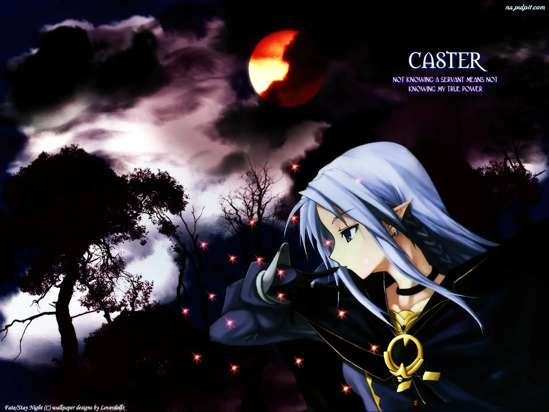drzewa, księżyc, noc, Fate Stay Night, kobieta Na Pulpit