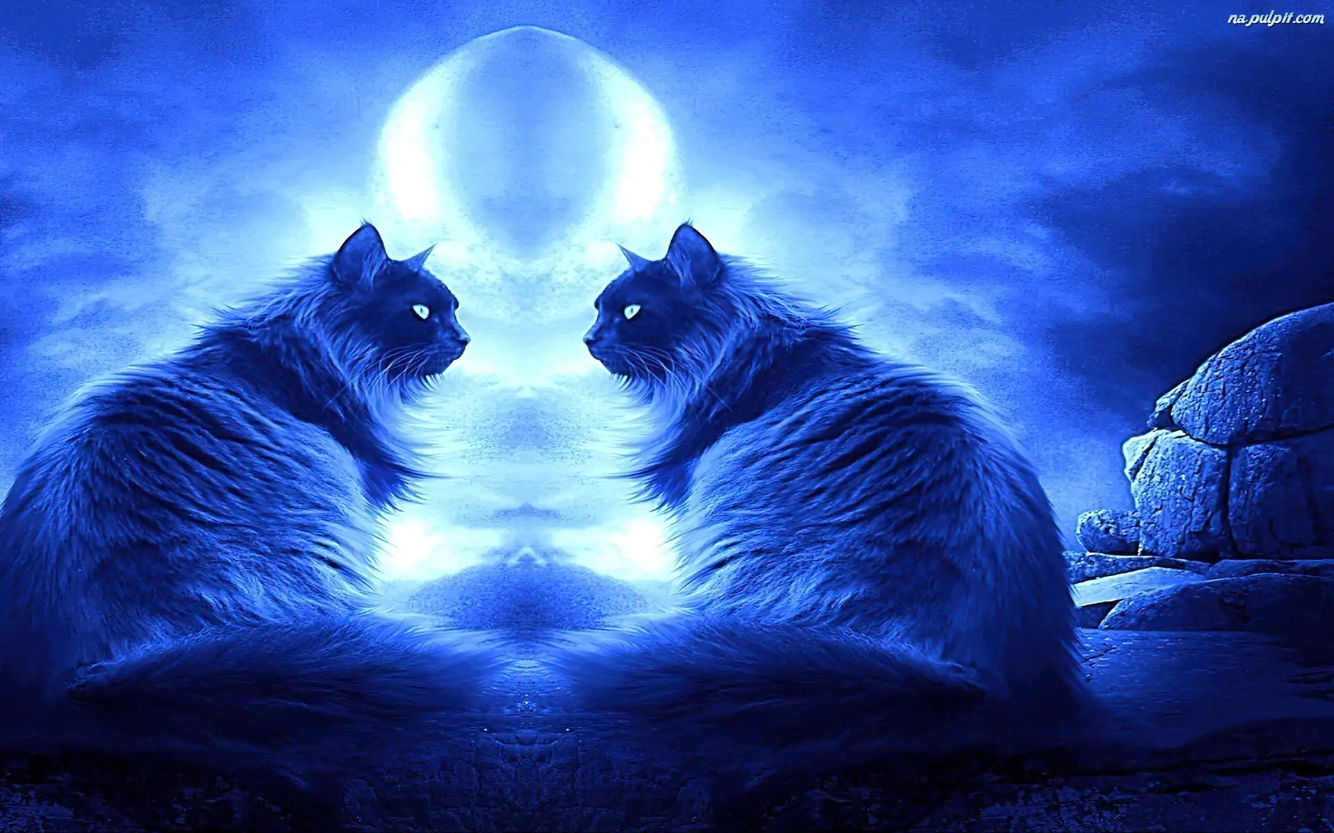 Księżyc, Koty, Dwa, Noc Na Pulpit