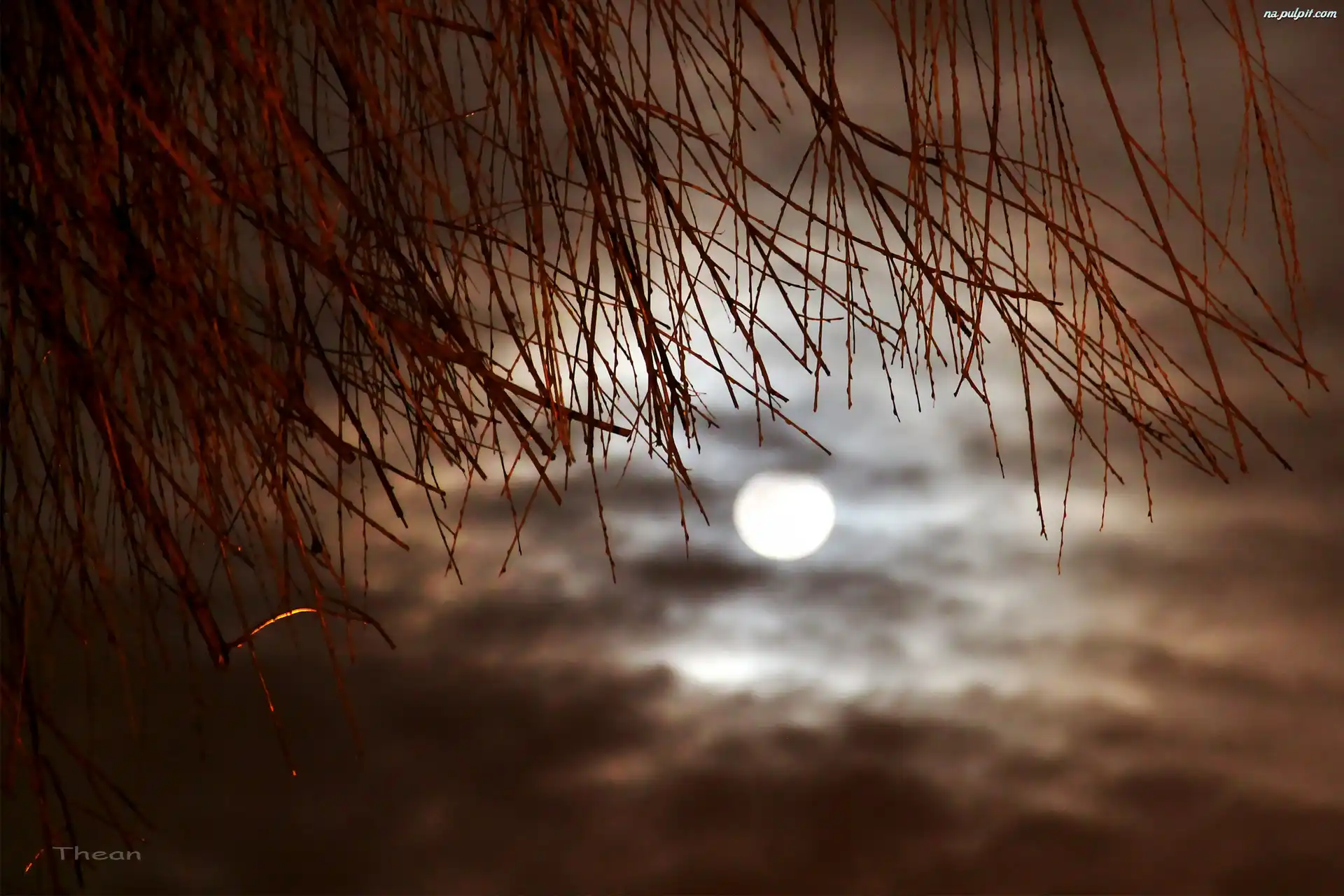Księżyc, Nocne, Gałązki, Niebo Na Pulpit