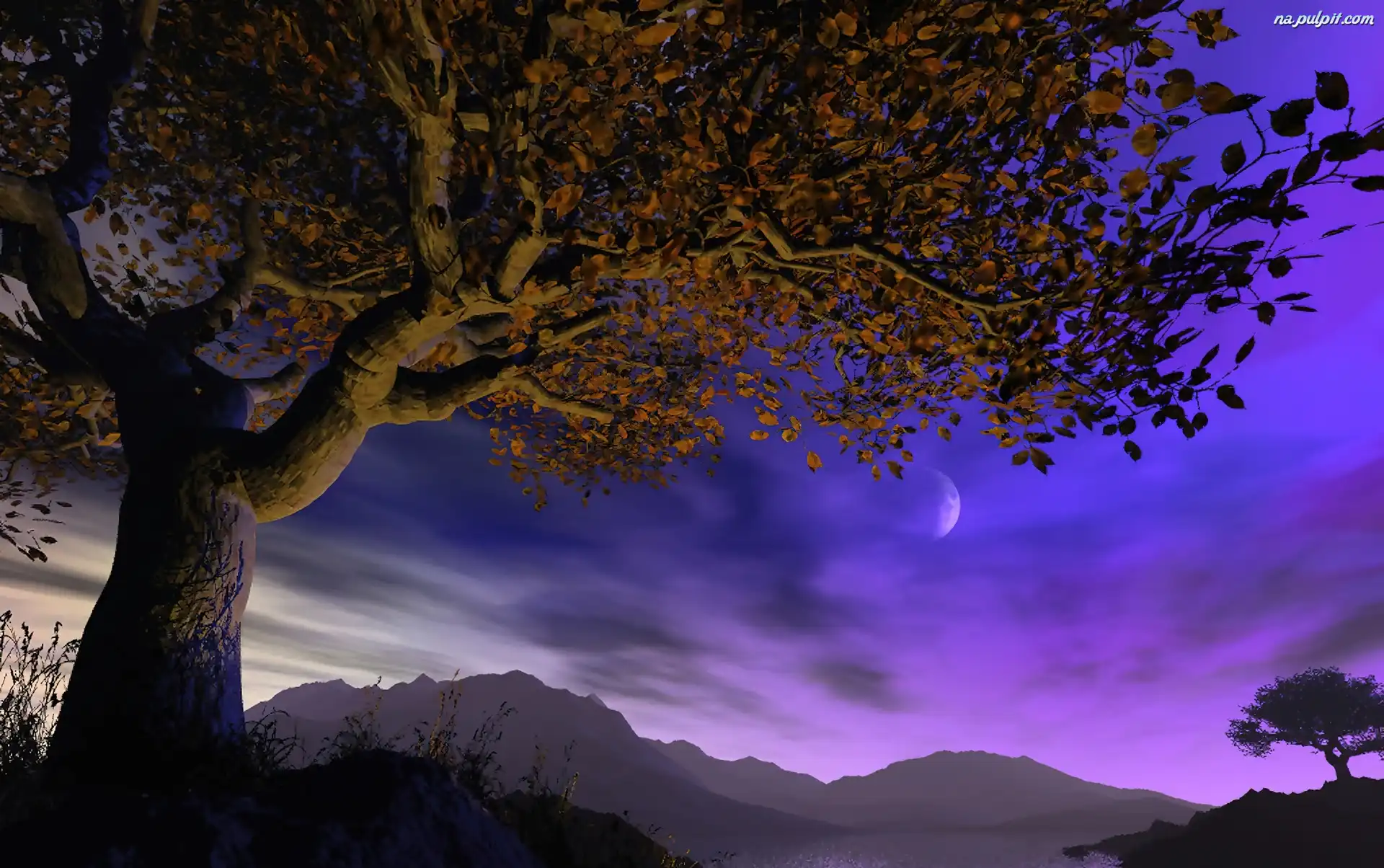 Księżyc, Drzewo, Góry, Niebo Na Pulpit