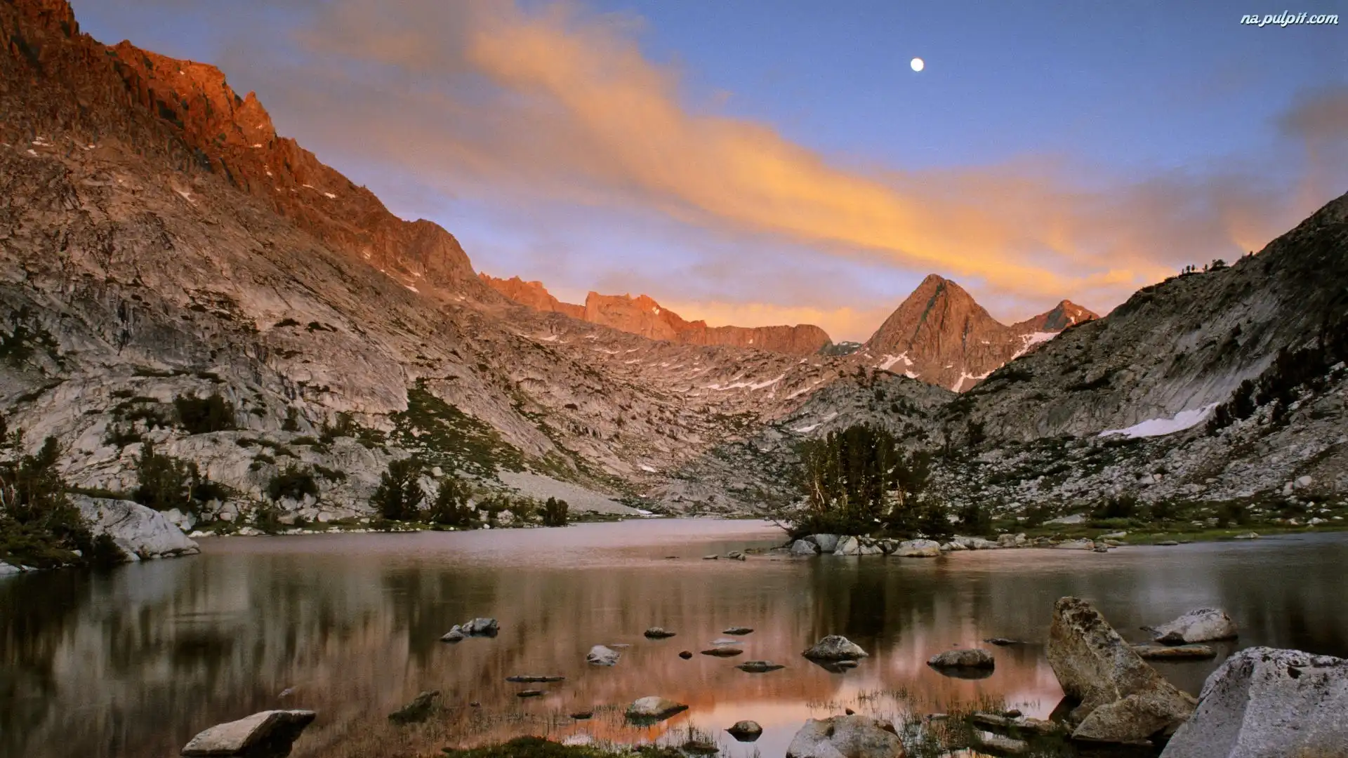 Księżyc, Góry, Jezioro, Niebo Na Pulpit