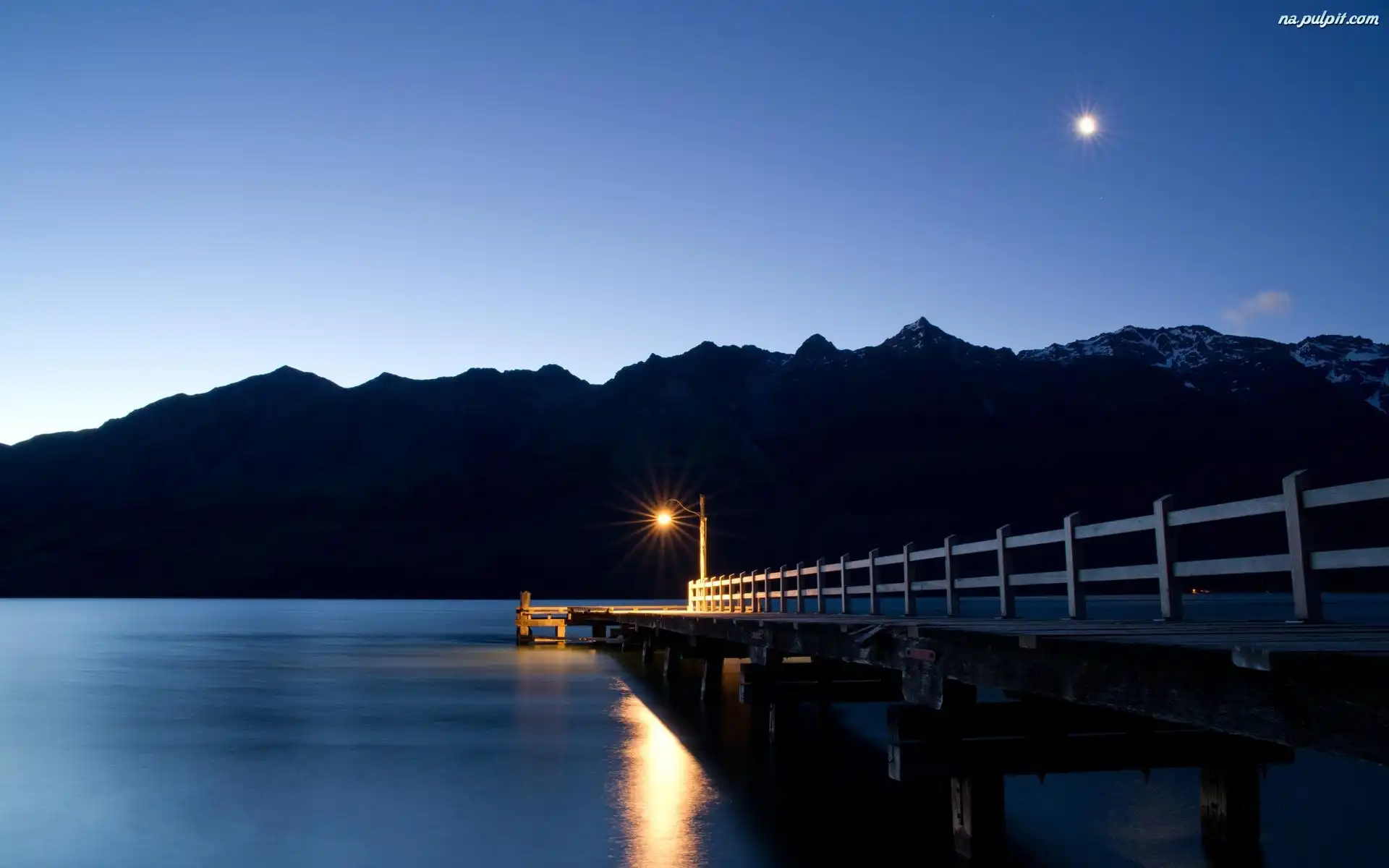 Księżyc, Pomost, Góry, Jezioro, Latarnia Na Pulpit