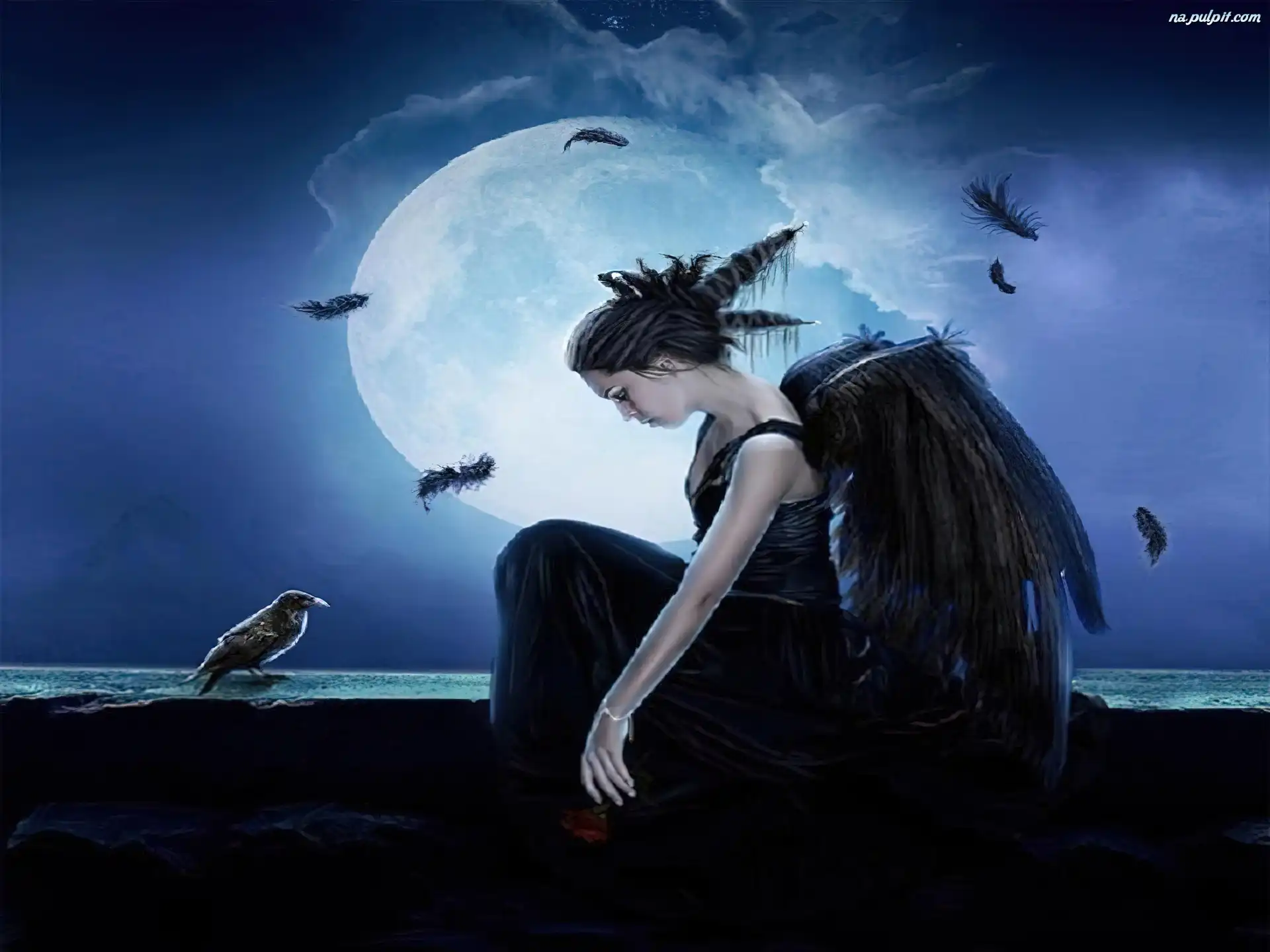 Księżyc, Czarne, Kobieta, Skrzydła Na Pulpit