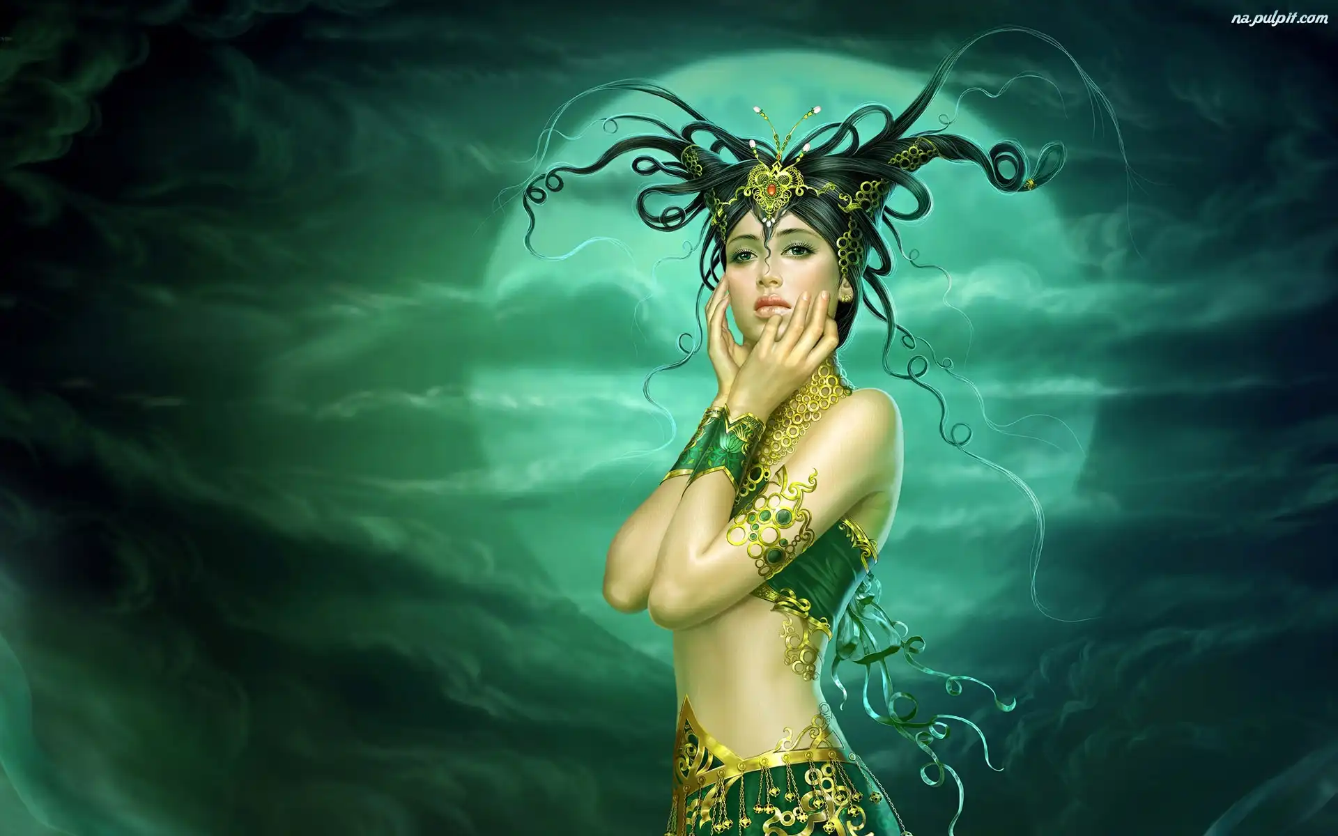 Księżyc , Fryzura, Kobieta, Zielony Na Pulpit