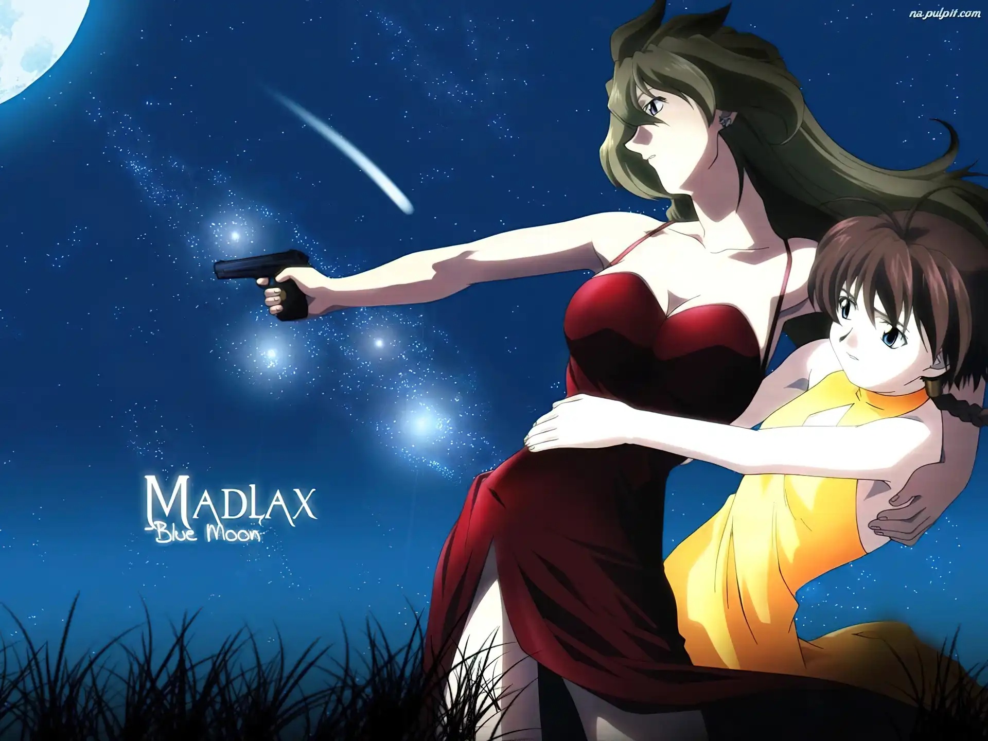 księżyc, kobieta, Madlax, pistolet Na Pulpit