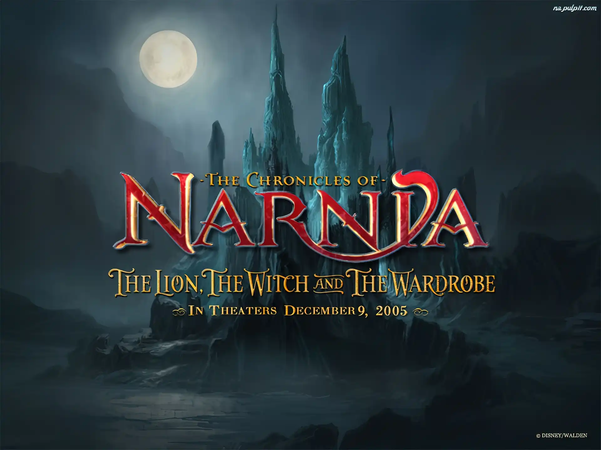 napis, księżyc, zamek, The Chronicles Of Narnia, noc Na Pulpit