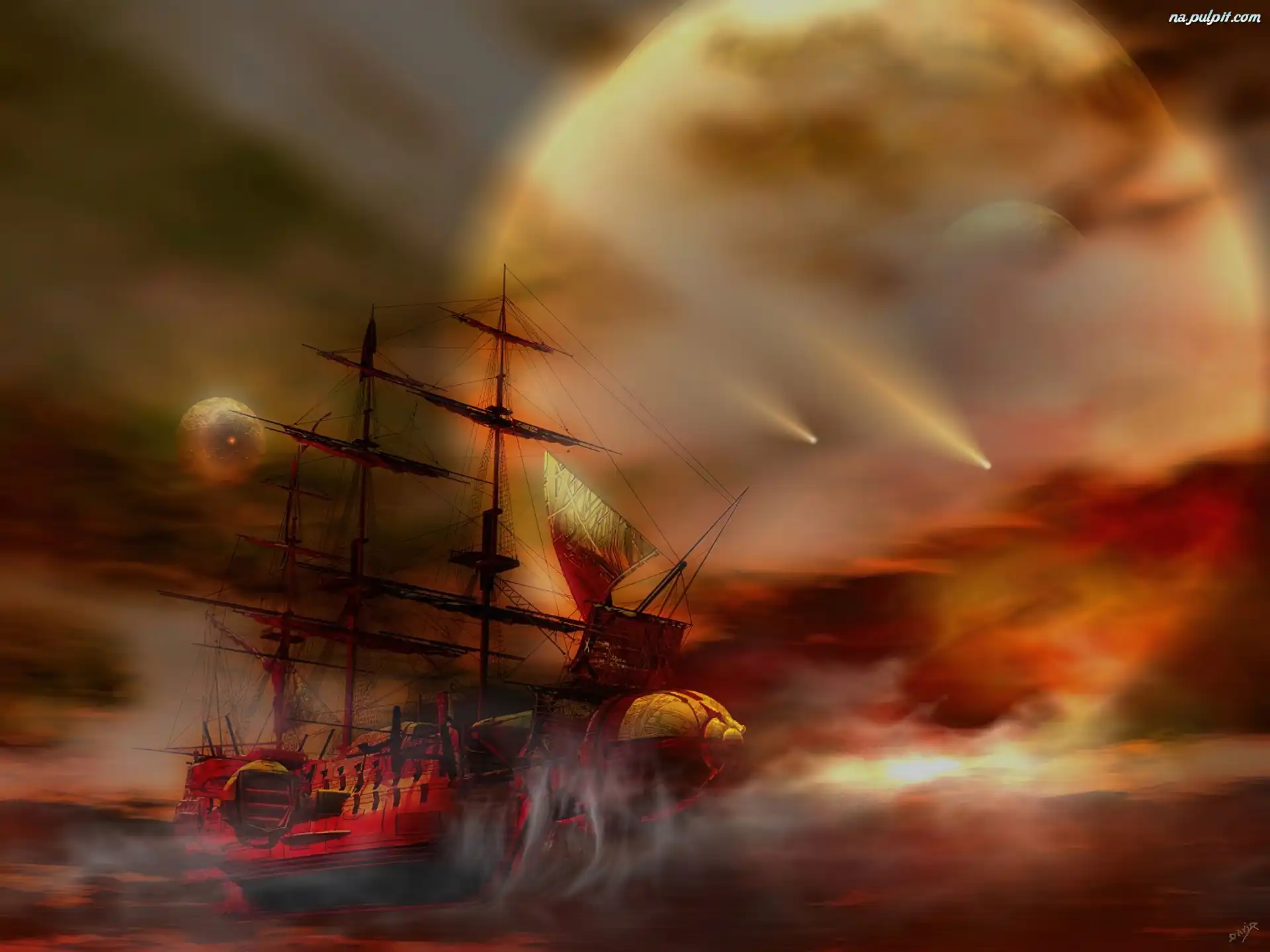 Księżyc, Statek, Obraz, Mgła Na Pulpit