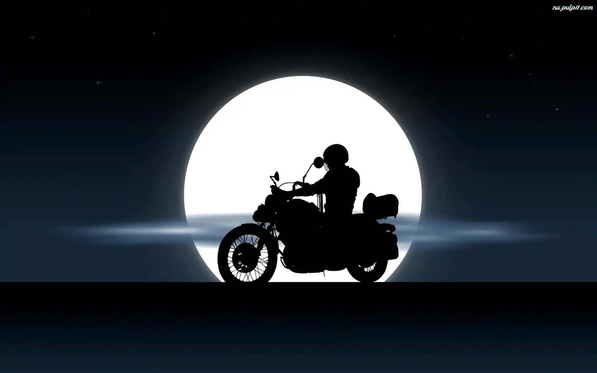 Księżyc, Motocyklista, Yamaha XV535 Virago, Noc