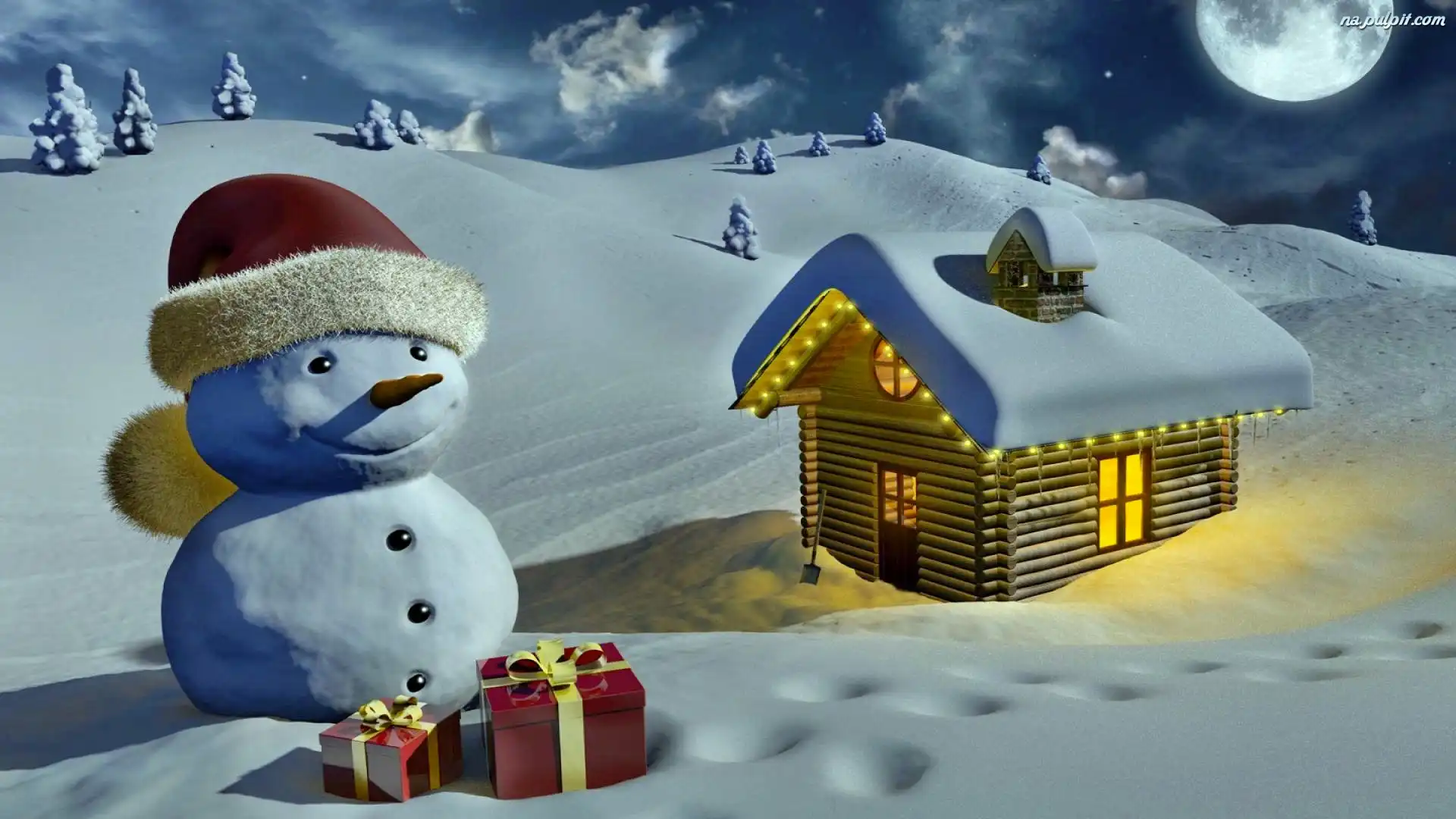 Księżyc, Bałwanek, Świąteczny, Domek