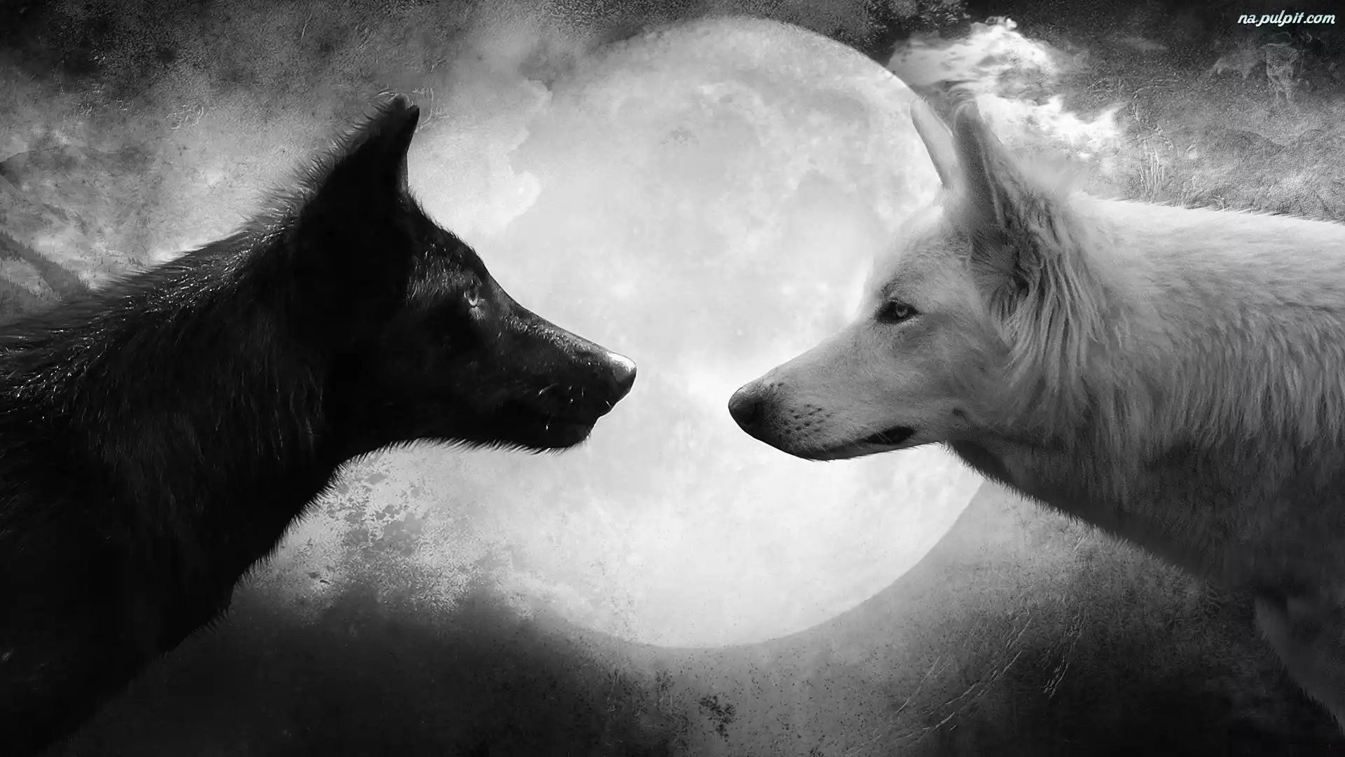 Księżyc, Czarny, Wilki, Biały