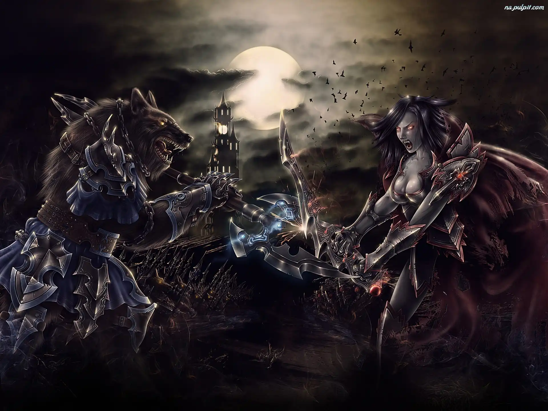 Księżyc, Walka, Wilkołak, Wampir Na Pulpit