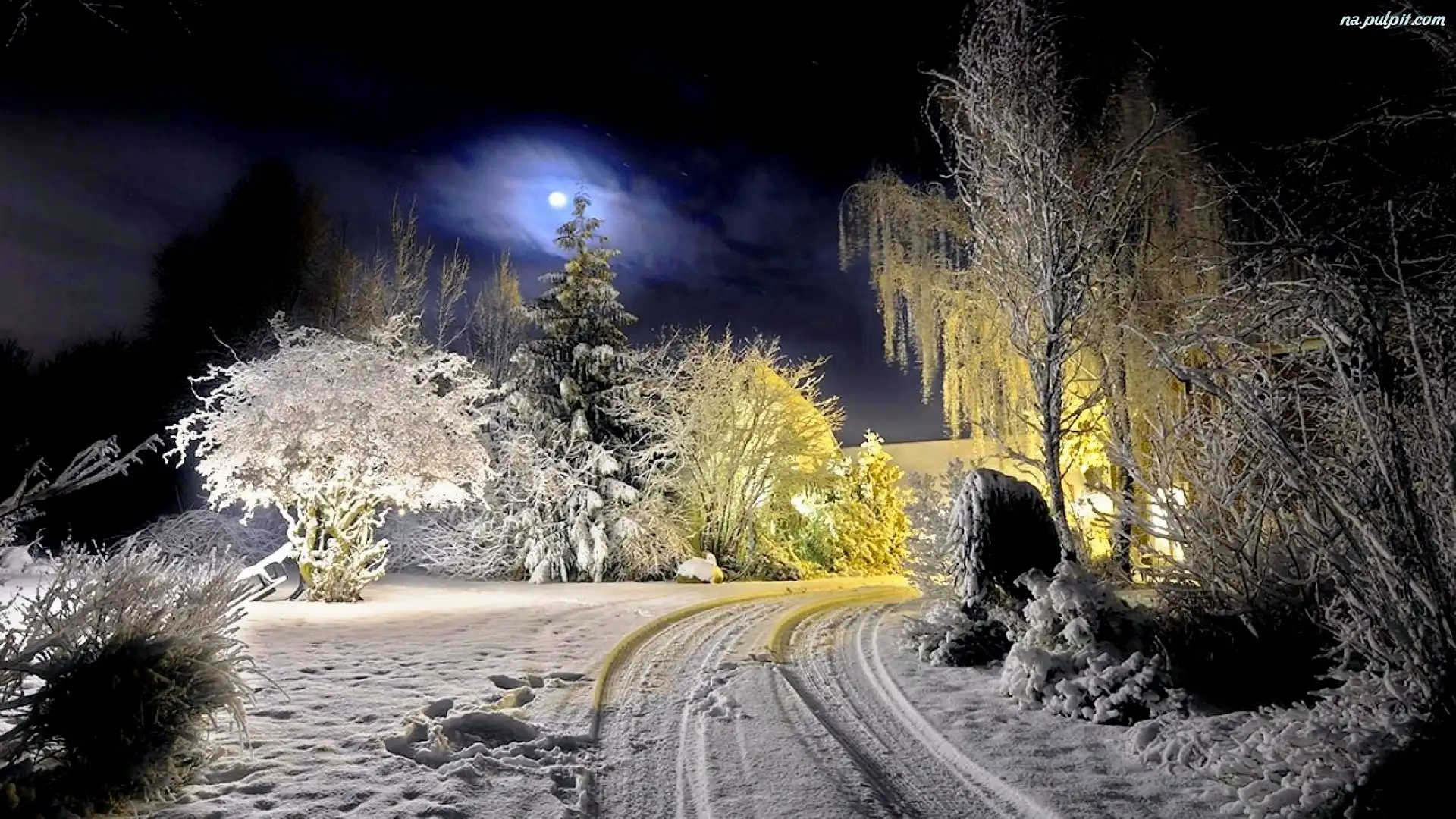 Księżyc, Las, Zima, Droga Na Pulpit