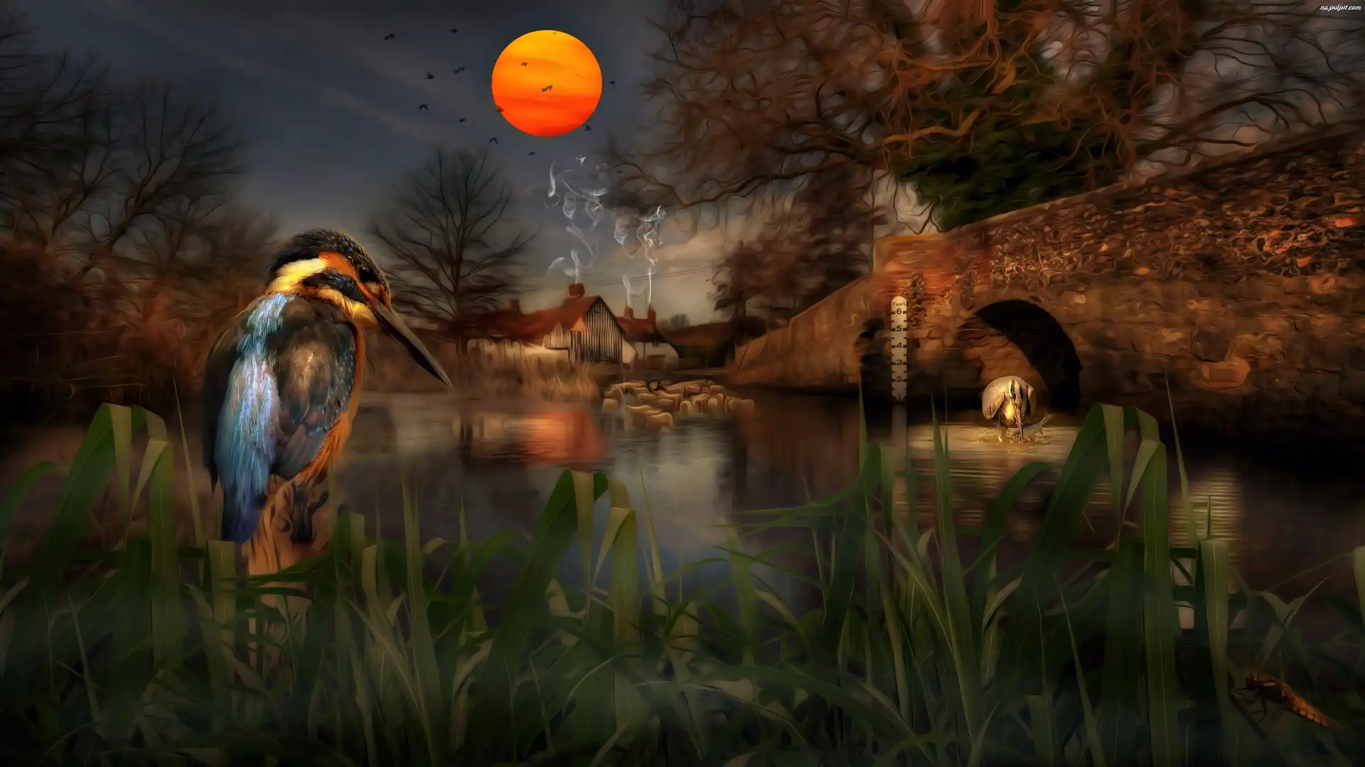 Księżyc, Rzeka, Zimorodek, Most
