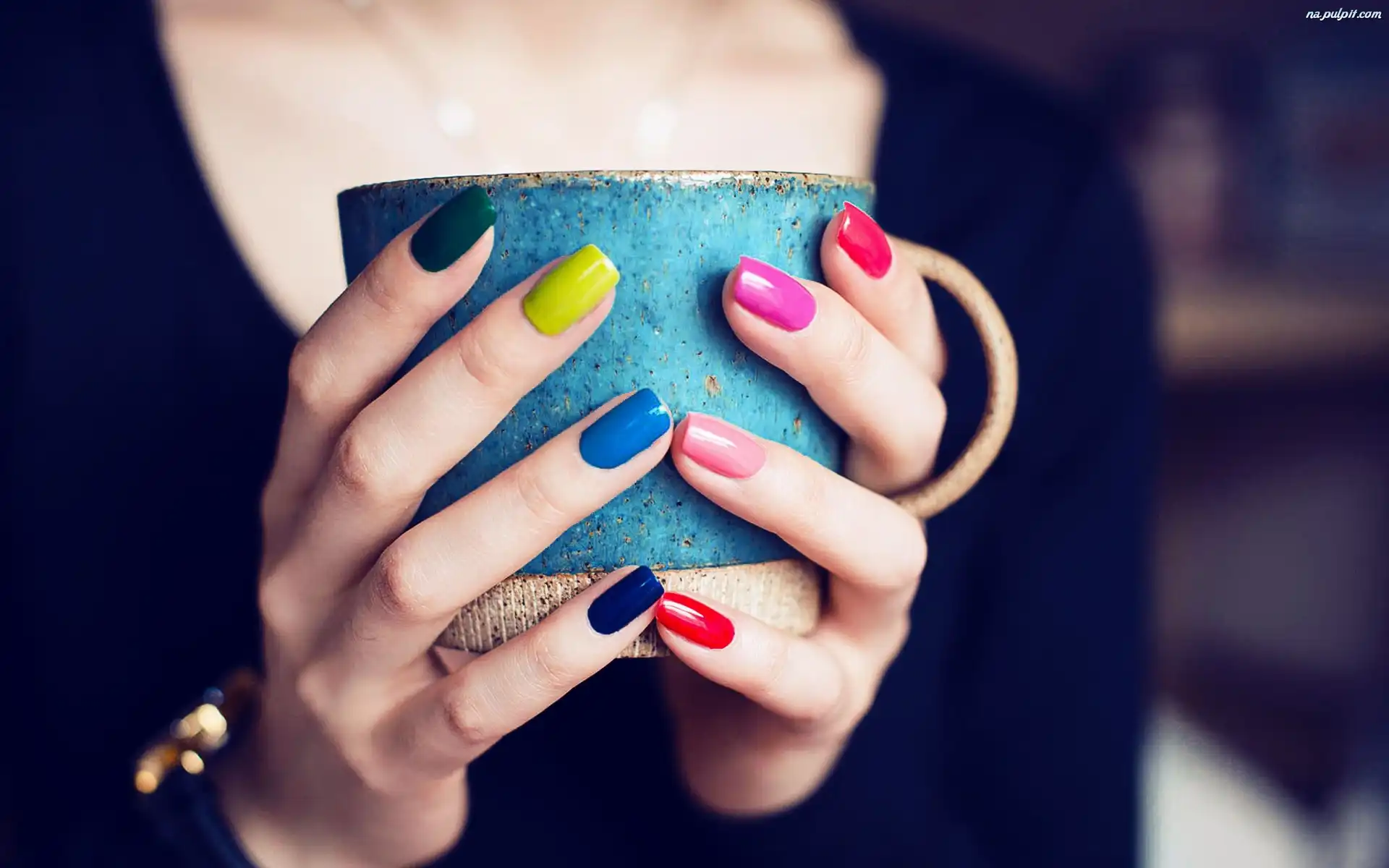 Kubek, Paznokcie, Kolorowe, Kobieta, Manicure Na Pulpit