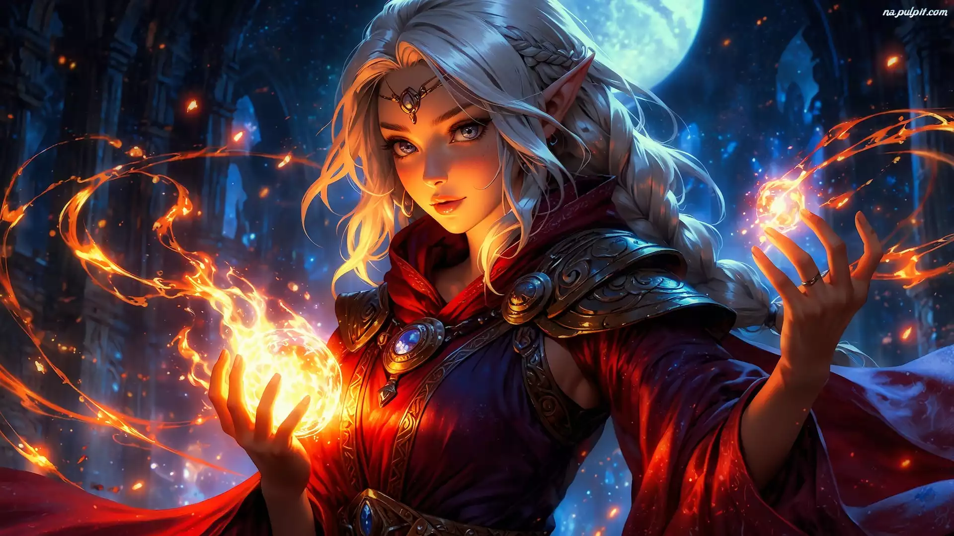 Ognista, Grafika, Elf, Kula, Kobieta, Fantazja Na Pulpit