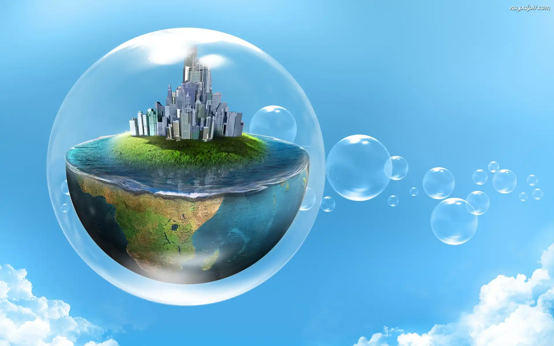 Kula, Chmury, Błękit, Ziemska, Grafika, Budynki