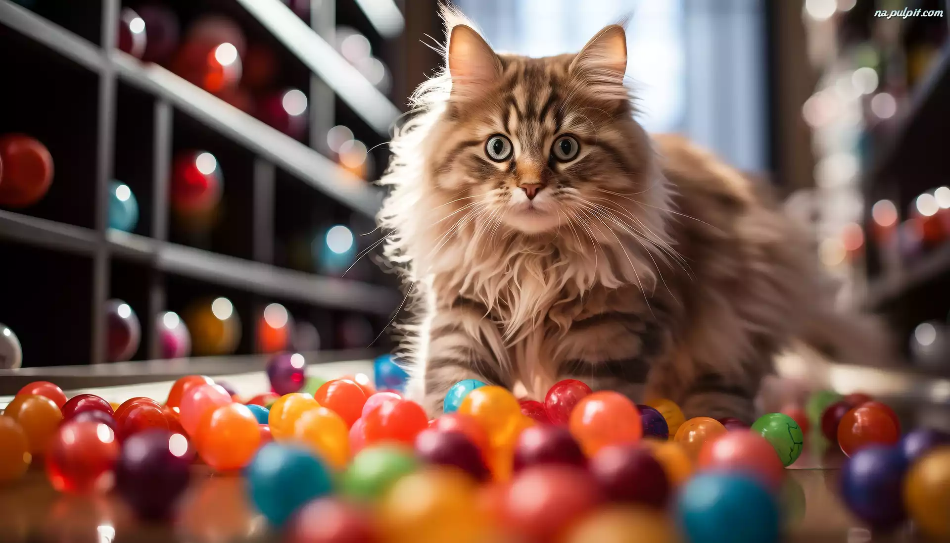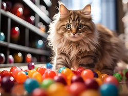 Puszysty, Kot, Kolorowe, Kulki