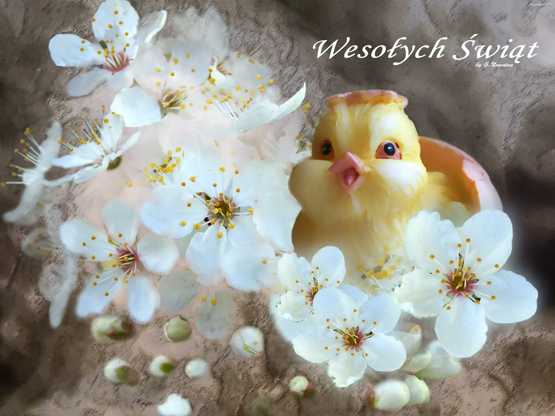 Wielkanoc, Kurczaczek, Kwiaty
