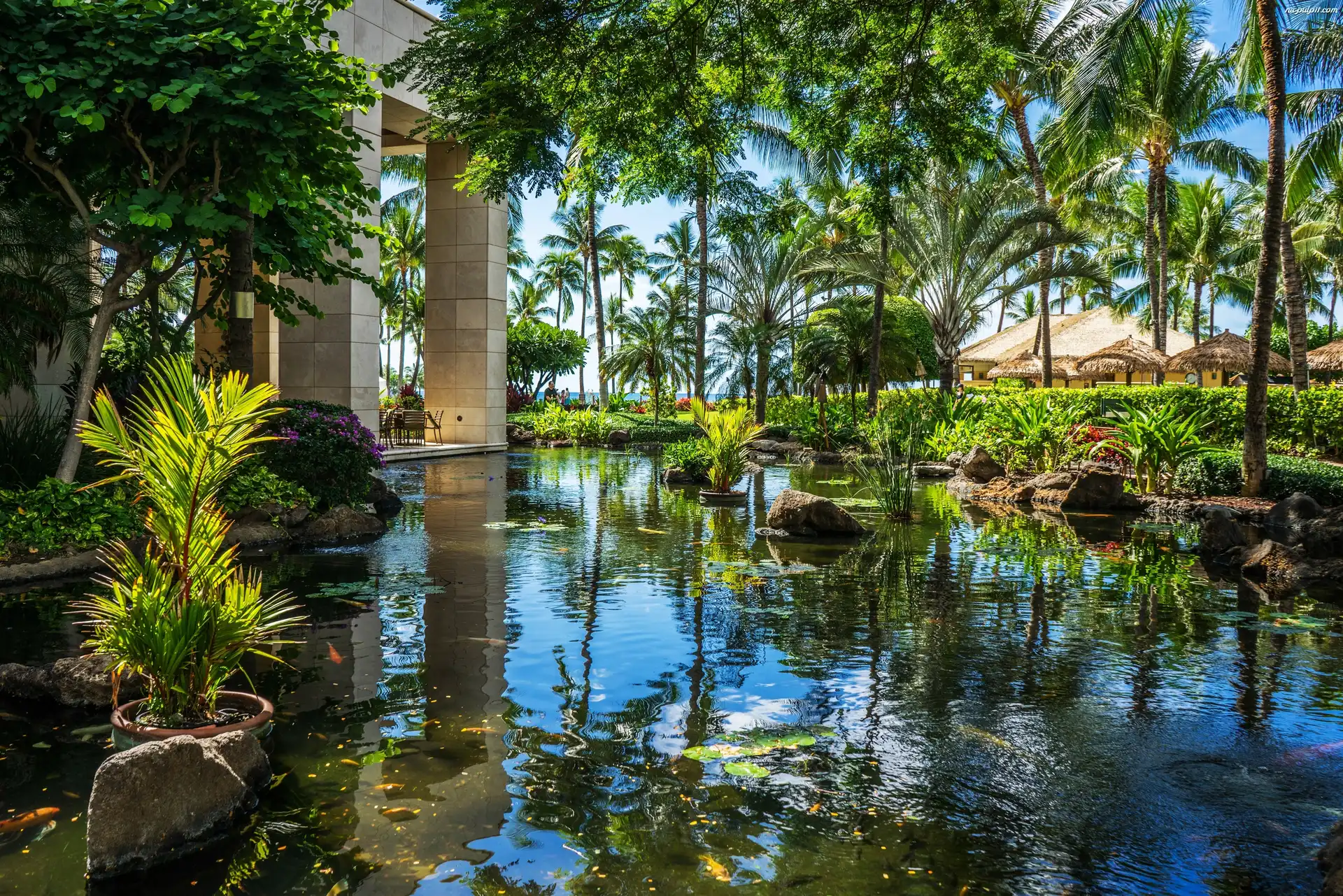 Kurort, Staw, Kompleks, Hotelowy, Palmy