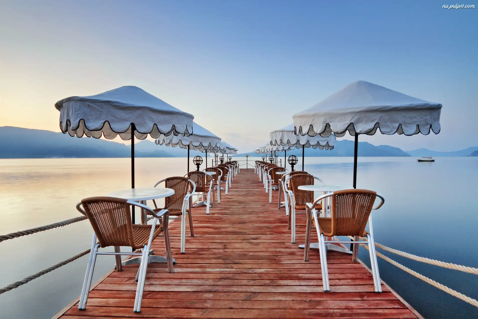 Kurort, Stoliki, Parasole, Morze, Turcja, Molo