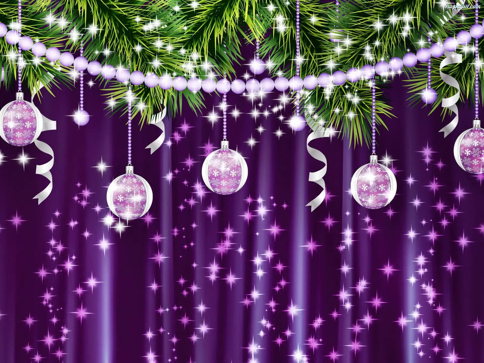 Kurtyna, Gwiazdki, Bombki, Święta, Satynowa