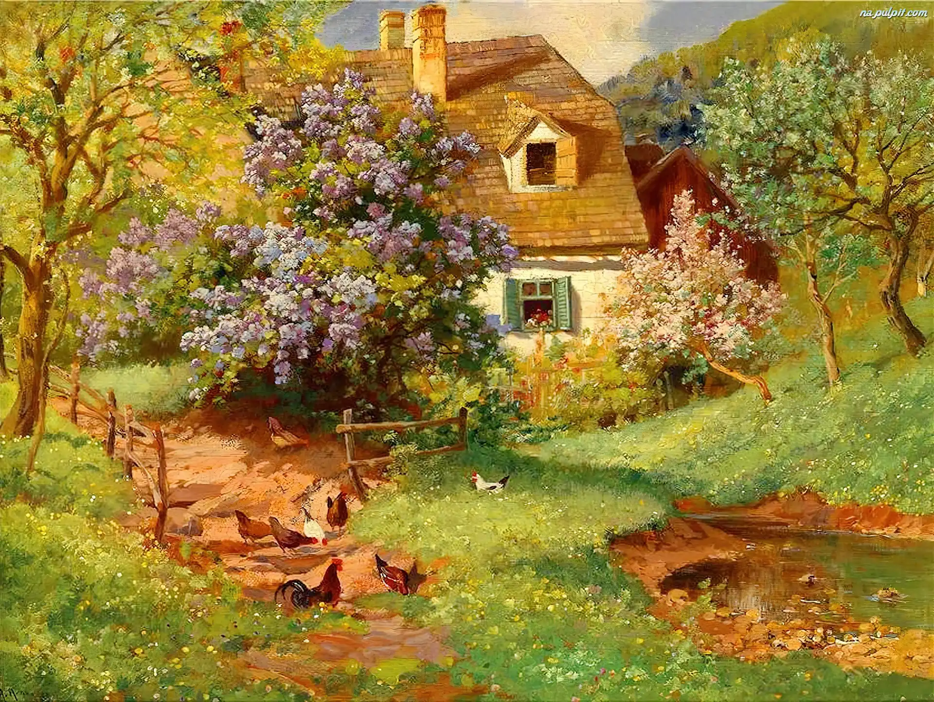 Domy, Żółte, Drzewo, Duże, Liście Kanały, Włochy, Wenecja Kwiat, Koszyk, Kurczaczki Dom, Kwitnąca, Wiśnia Domki, Brukowiec, Most, Rzeka Obrazu, Schody, Pies, Dziewczynka, Reprodukcja Lis, Kurczaczek Palmy, Chmura, Wyspa, Morze Taras, Leżak, Basen, Lato, Palma Kury, Drzewa, Dom, Kogut Rezydencja, Dom, Mieszkalny Trawa, Kogut Edgar Hunt, Kurczaki, Kury, Kogut Asheville, Biltmore, Estate