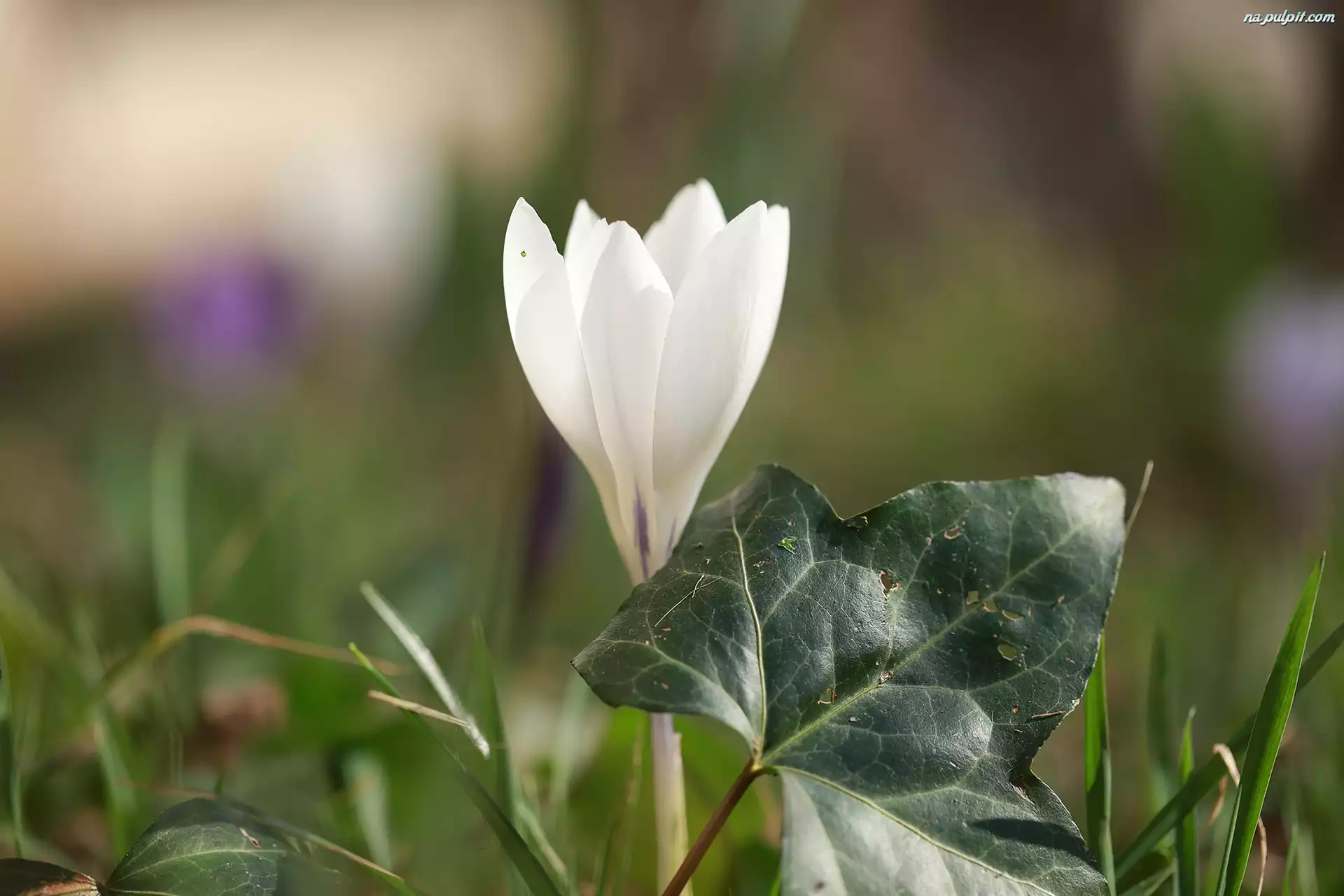 Biały, Krokus, Liść, Kwiat Na Pulpit