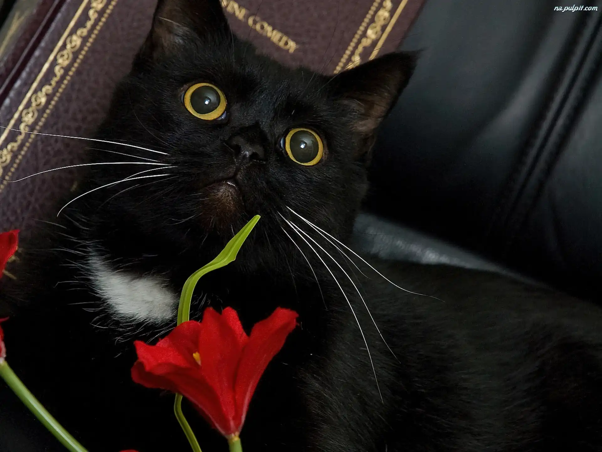 Kwiat, Kot, Czarny, Czerwony Na Pulpit