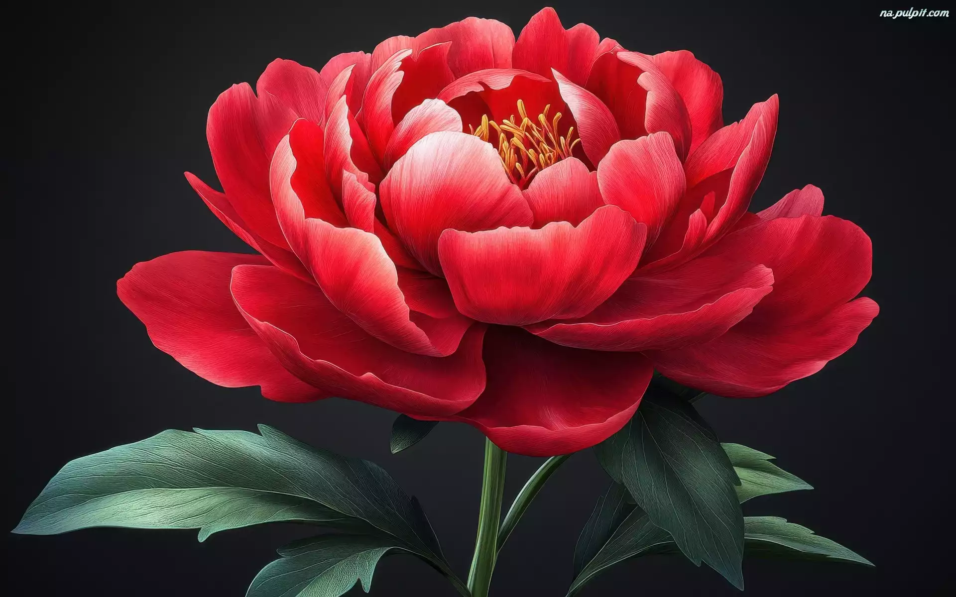 Liście, Kwiat, Czerwona, AI, Piwonia Na Pulpit